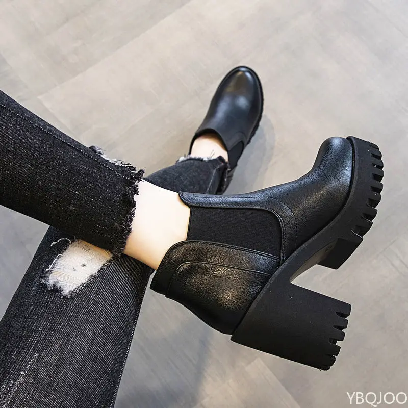 Autumn Winter New Coarse Heel Thick Bottom Fashionable Versatile Short Boots Casual Comfortable Women’s High Heels
