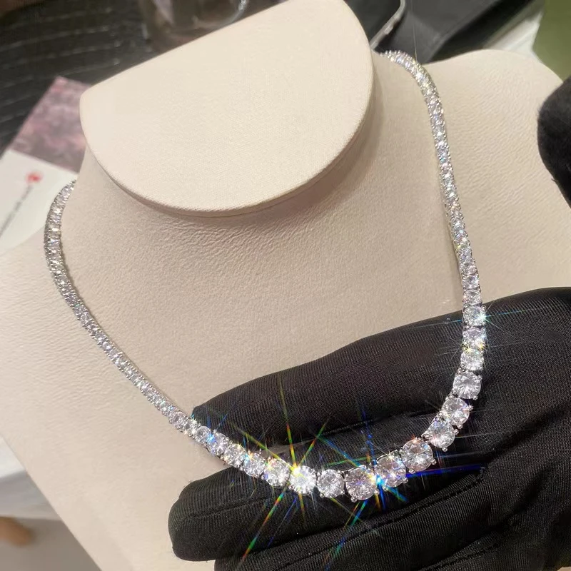 SEMNI 3mm-6.5mm Gradient Moissanite Diamond Tennis Necklace for Women Men 925 Sterling Silver Luxury Jewelry Sparkle Diamond