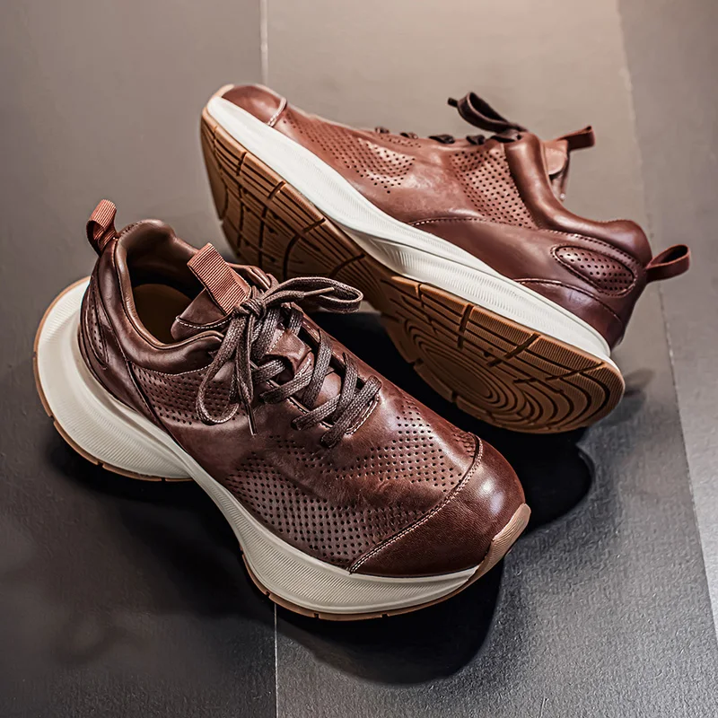 Women Walking Sneakers Autumn Lace-up High Platform Chunky Shoes Breathable Leather Shoes 10CM Winter Wedge Heels Casual Shoes