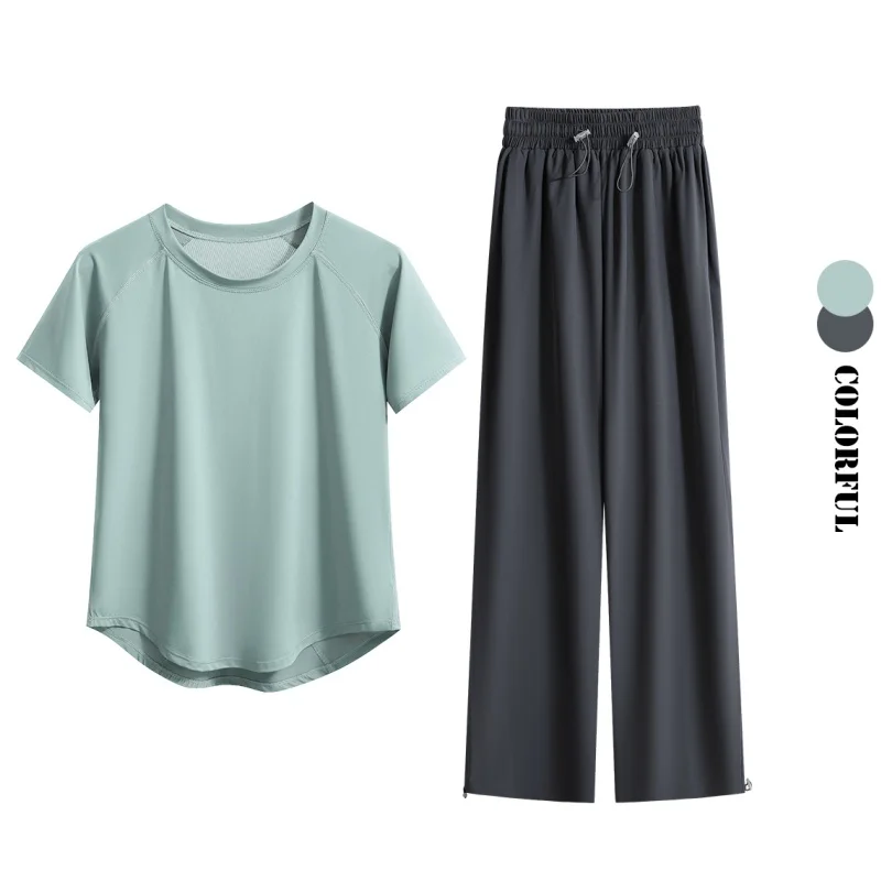DRUR Loose Breathable Yoga Set Women Lightweight Running Tracksuit 2 Piece Gym Outfit Summer Sportswear Tops Pants Suit Yogawear