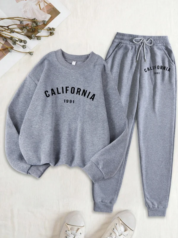 Califirnia Letter 1991 Print Women Soft Sweatshirt Set Street O-Neck Tracksuit Autumn All-Match Clothes Casual Fleece Sweatpant