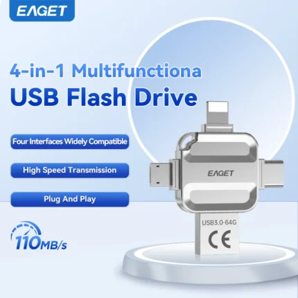 Eaget 4 in 1 Mini USB Flash Drive USB Type C Mirco B Lighting to USB 3.2 Pendrive USB Memories Stick for Phones PC Laptops