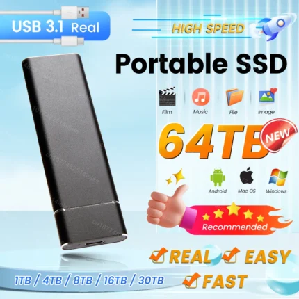 External SSD 2TB Fast Portable External USB3.1 Large Capacity Storage Drive Type-C Interface for Laptop/Desktop/Mac/Mobile Phone
