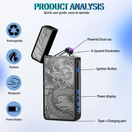 Type-C Rechargeable Dual Arc Plasma Electric Lighter Intelligent Induction Ignition Outdoor Windproof Flameless Candle Lighter