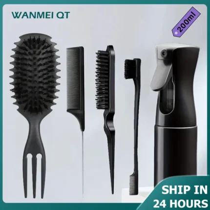 5pc Hair Styling Set: 200ml Spray Bottle 3-in-1 Candy Bursh Curly Hair Brush Curved Rat Tail Comb Edge Control Brush Hair Tools