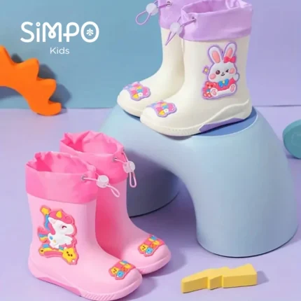 Kids’ Mid-Calf Rain Boots Non-slip Durable With A Drawstring To Prevent Water Ingress High-Quality Rubber Waterproof Shoes