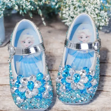 Kids’Casual Shoes Elsa Princess Frozen PU Leather Sequin Crystal Spring Shoes Anti-slip Soft Bottom Purple Blue Size 23-34