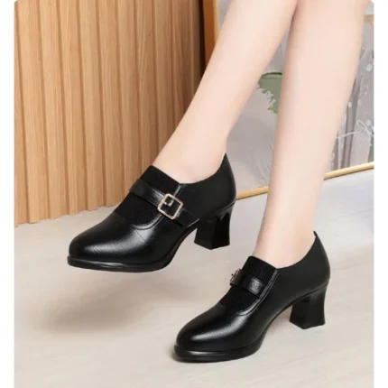 All-Season Fashion Women’s Pumps – Soft Leather, Deep Vamp, Block Heel, Comfort Fit, Ideal for Office & Daily Wear, Mom Style