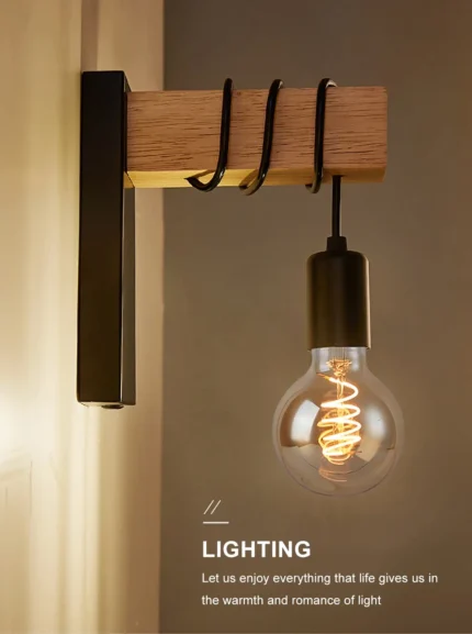 Vintage Design Wood Wall Lamp with E27 Base Type Black White Style Wood Lamp Lights for Cafe Restaurant Home Decorative Lighting