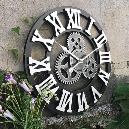 American Gear Vintage Wall Clock Industrial Wooden Silent Wall Clock Living Room Decorative Creative Wall Clock Large Timepiece