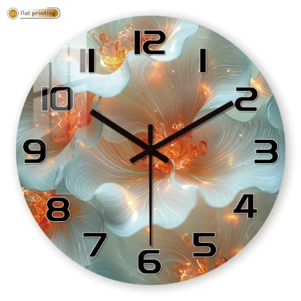 Abstract Glowing Flower Wall Clock, Warm-Tone Floral Art Decor, Luxury Botanical Home Accent Timepiece