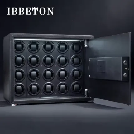 Black Watch Winder Security Safe for Automatic Watches with Digital Lock Faux Leather Finish and Interior Backlight 20slot