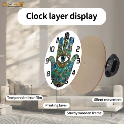 Hamsa Hand Evil Eye Wall Clock, Bohemian Blue Gold Pattern Decor, Cultural Symbolic Protective Home Accent