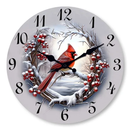 1pc Wooden wall clock, Watercolor Winter Cardinals design wall clock, silent clock, Living Room Bedroom, Room Decor, Home Decor