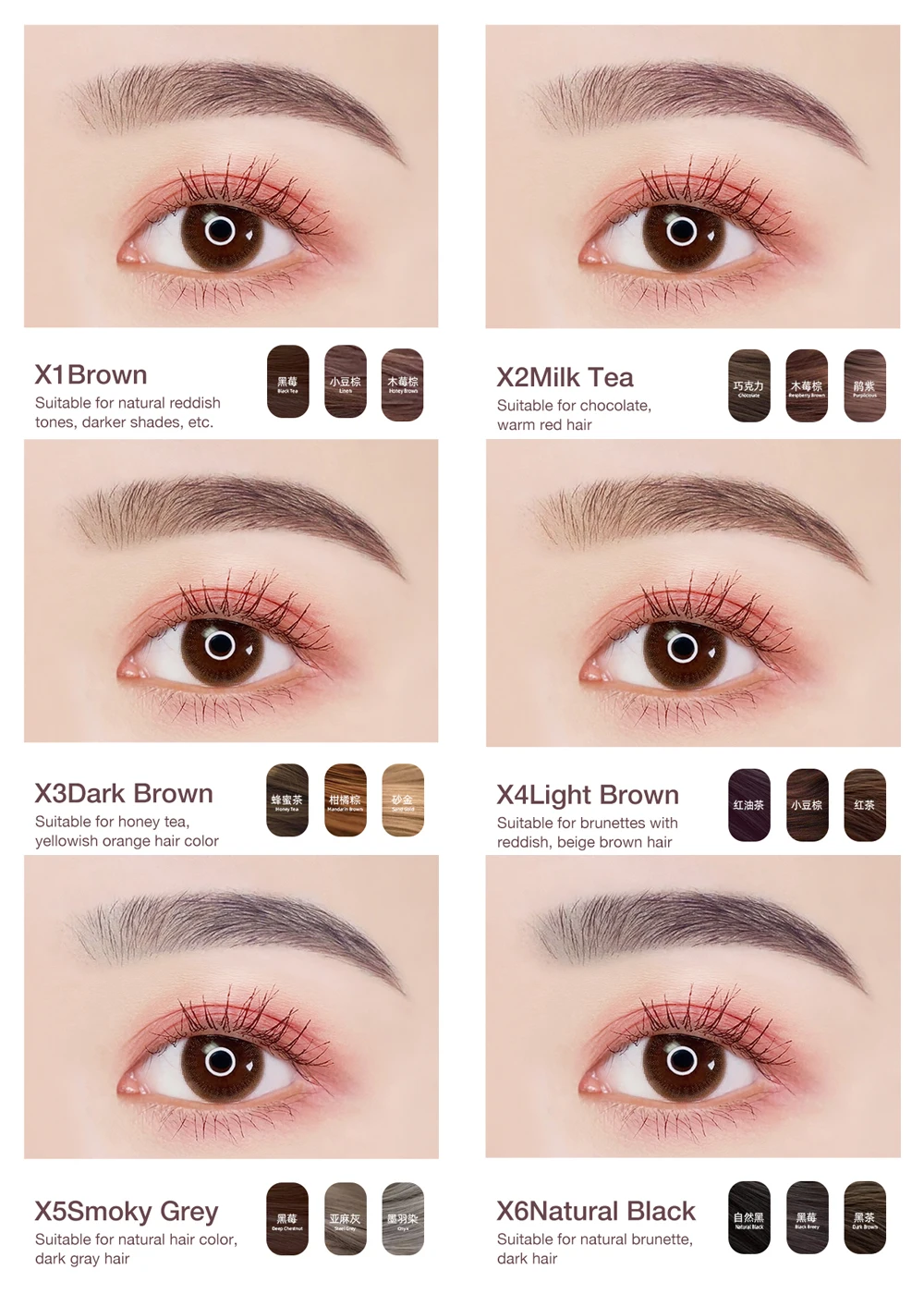 With natural and gentle color, which can help your eyebrow looks more natural