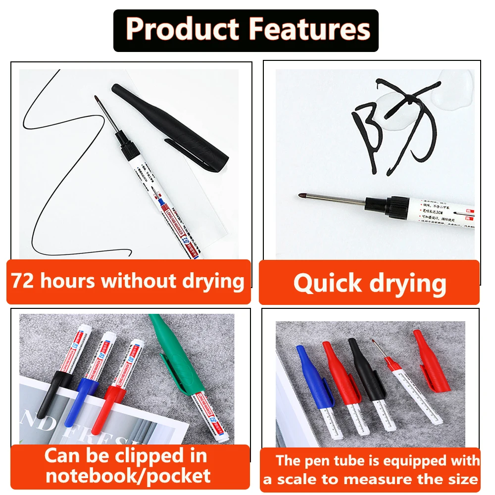 1-8pcs 32mm Long Head Markers Pen Multi-purpose for Woodworking Tile Decoration Deep Hole Marker Pens Red/Black/Blue/Green Ink
