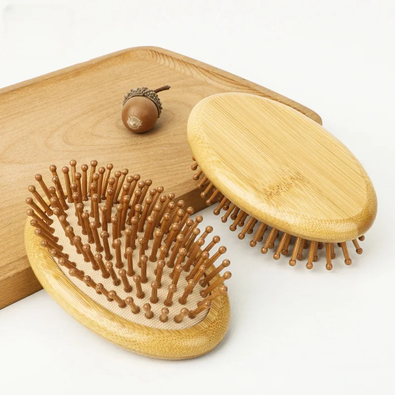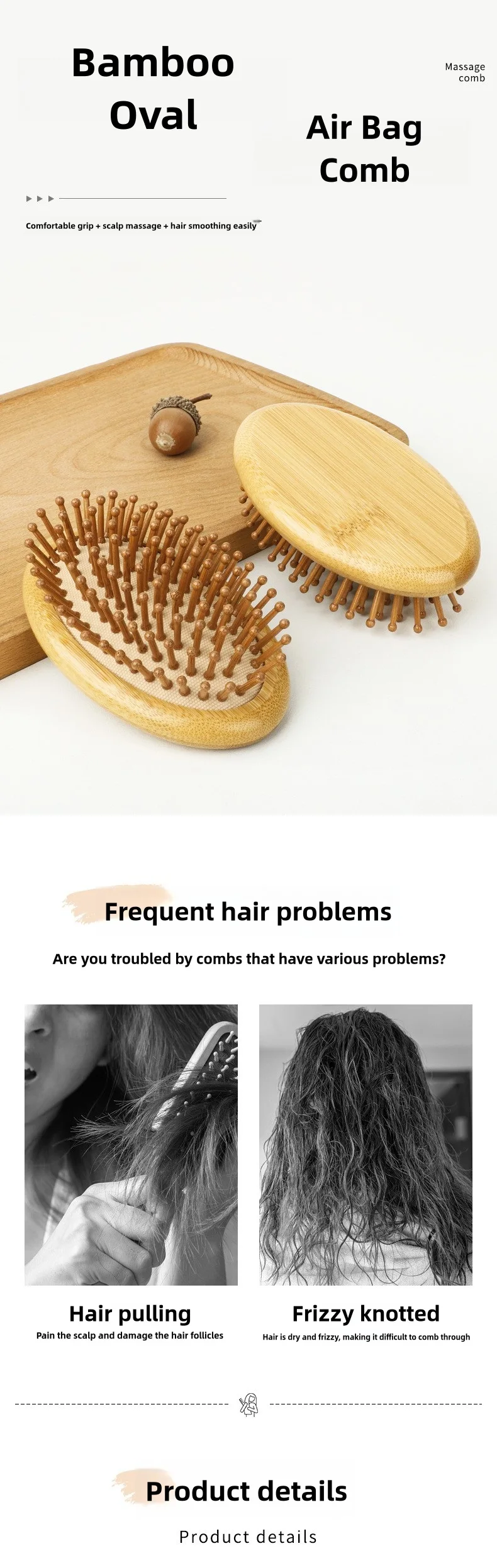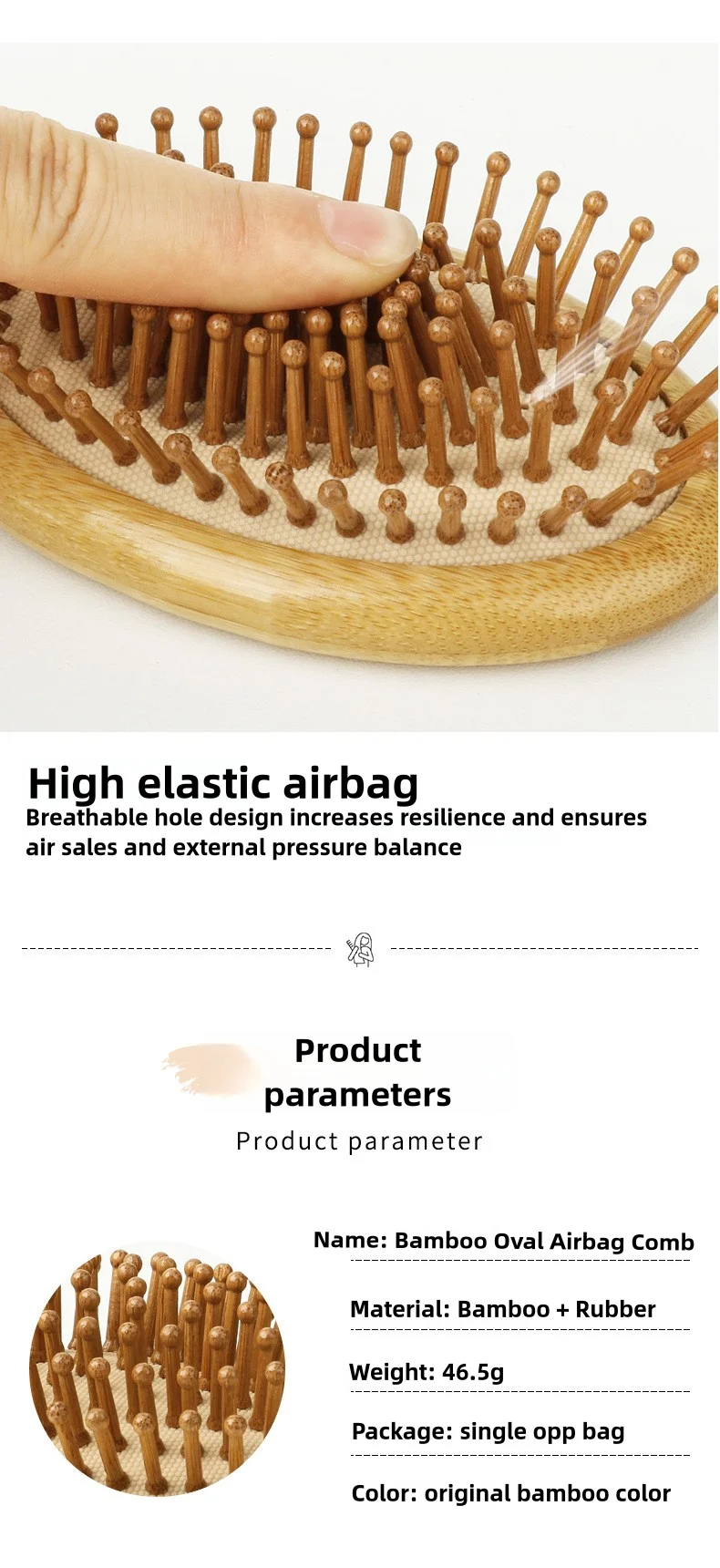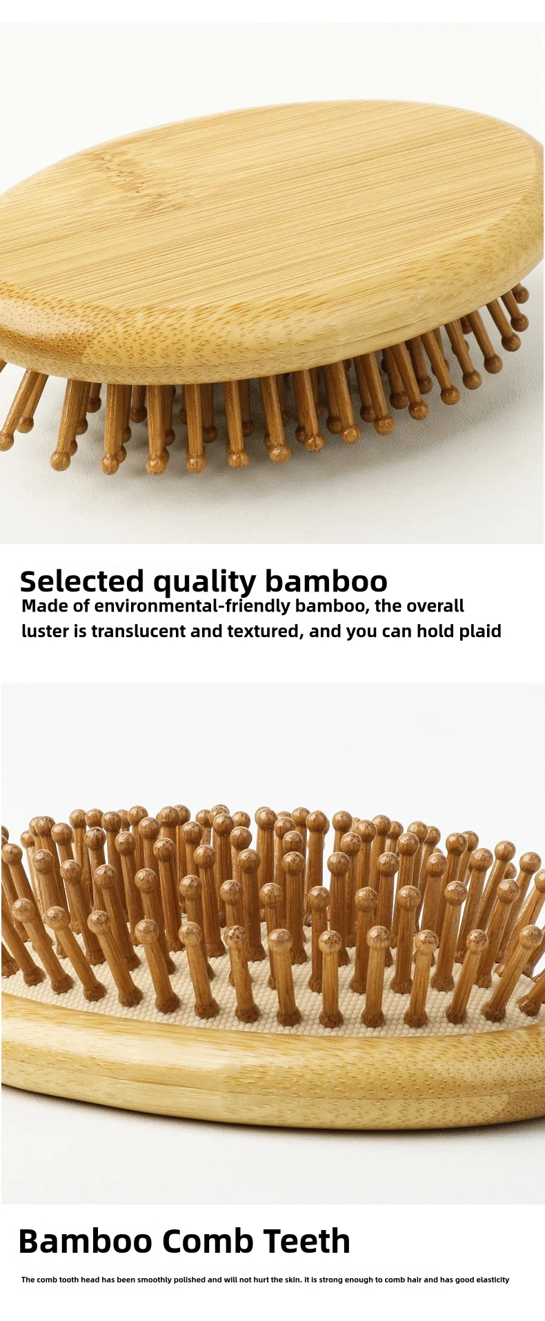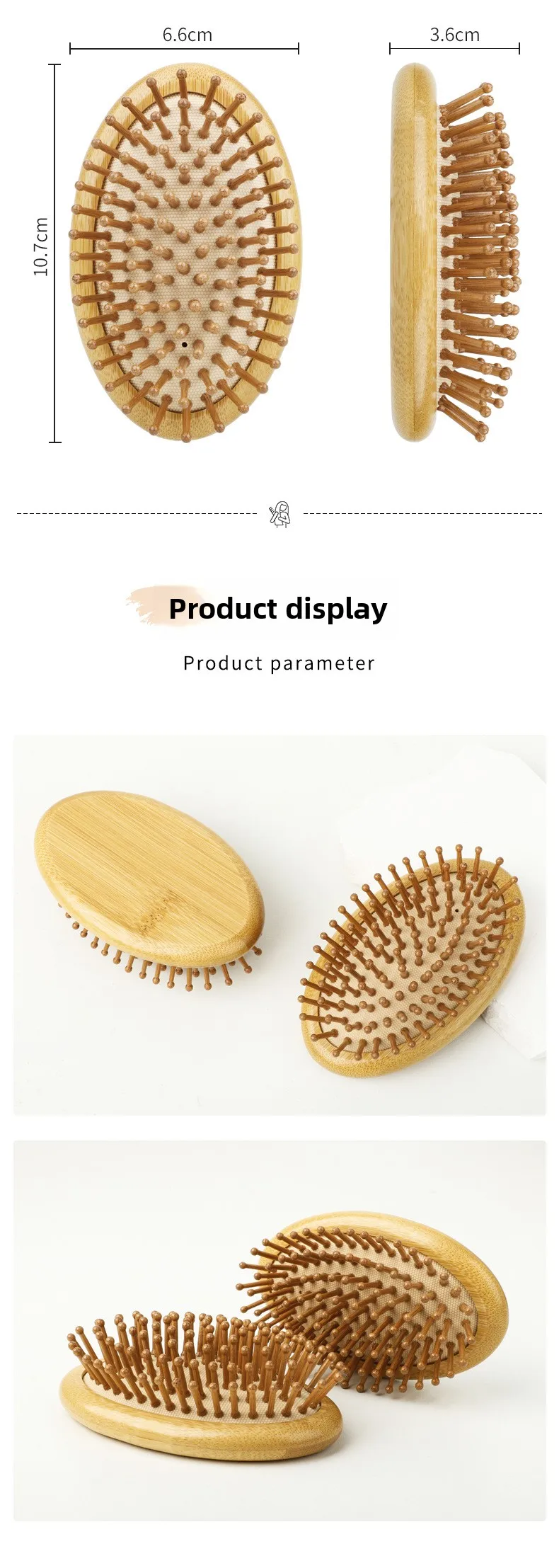 1 Pc Portable Eco-Friendly Bamboo Hair Comb Wooden Round Hair Brush Scalp Massager Anti-Static Hairbrush for Women Men and Kids