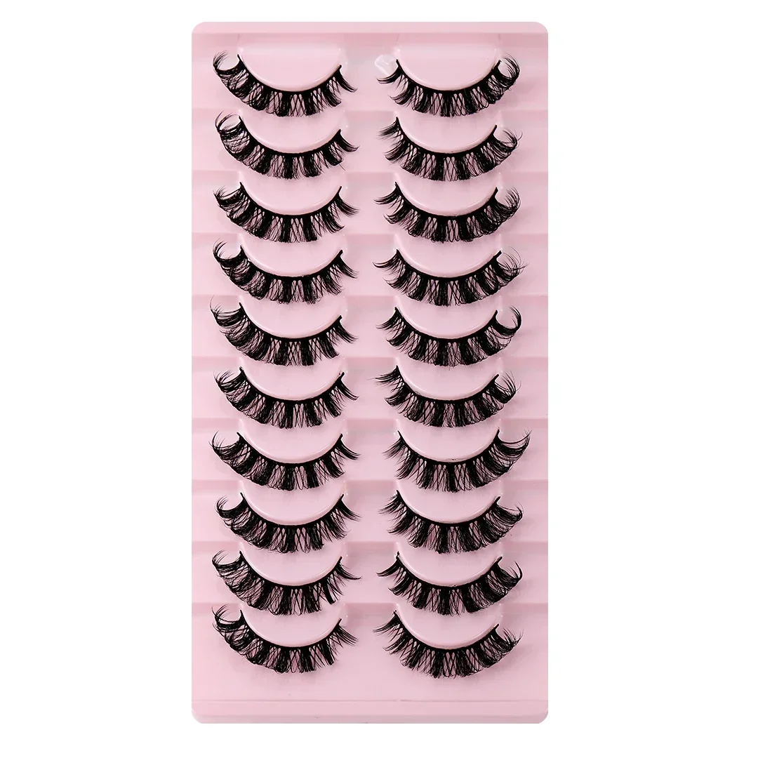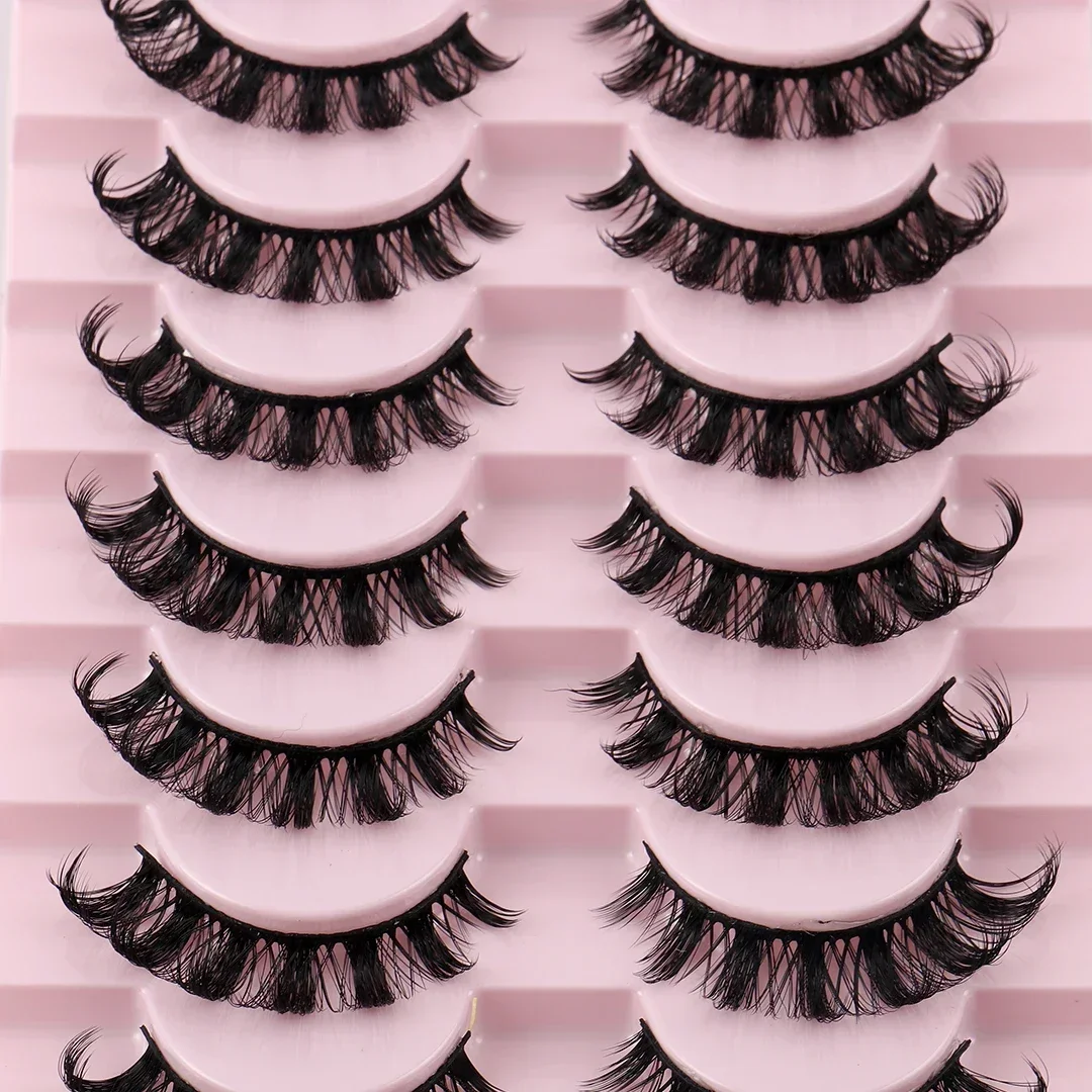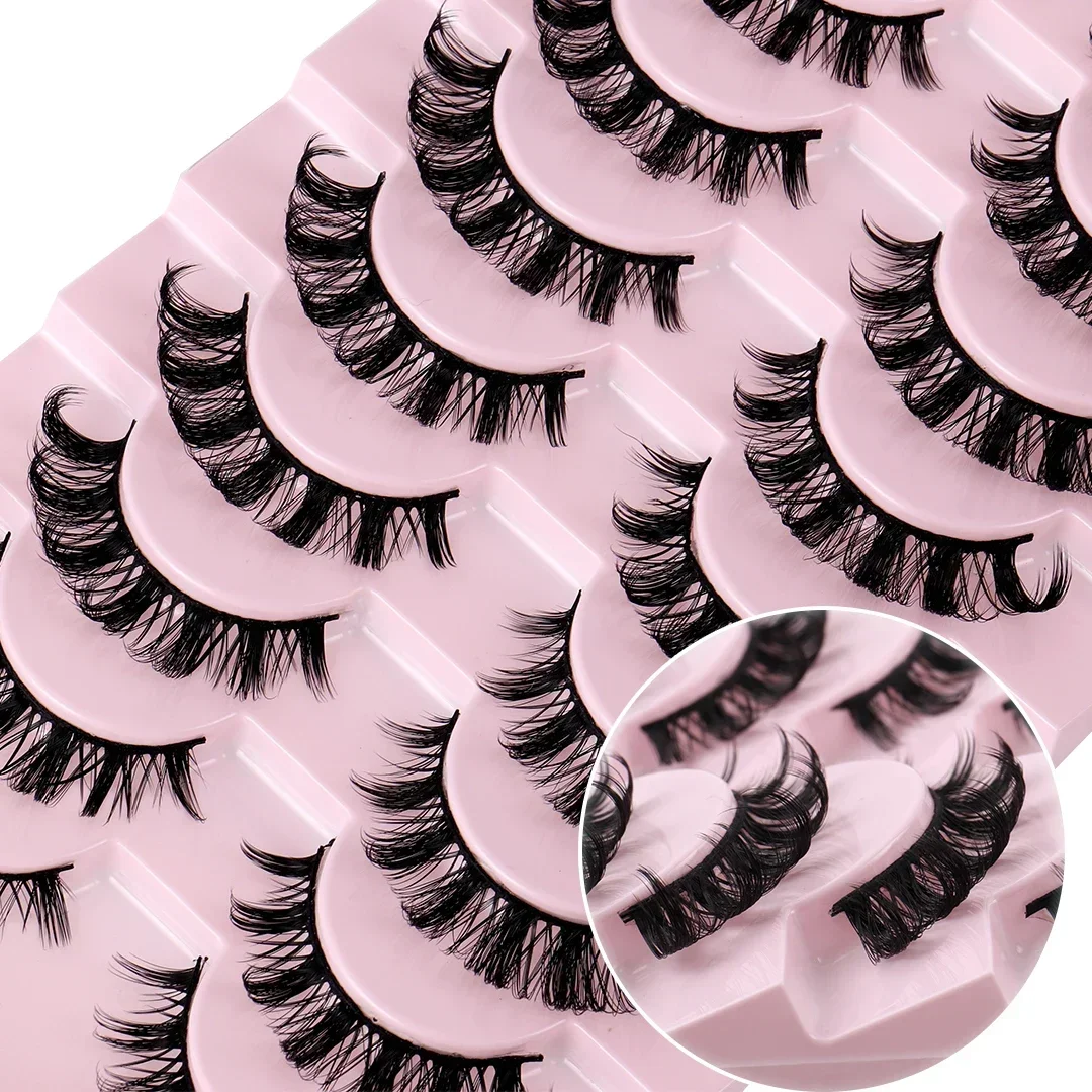 10 Pairs Russian Strip Lashes D Curl Fake Lashes Natural Look Fluffy Volume Wispy Russian Lashes 3D Effect Fake Eyelashes