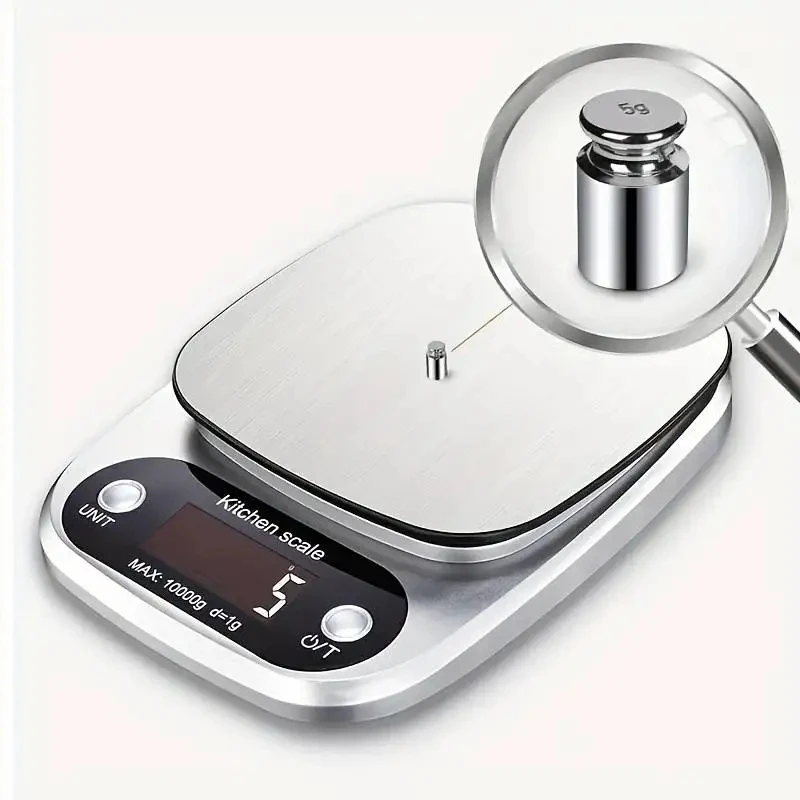 10kg Kitchen Scale Digital Kitchen Scale with Tare Function Electronic Jewelry Food Baking Scale LCD Display Stainless Steel