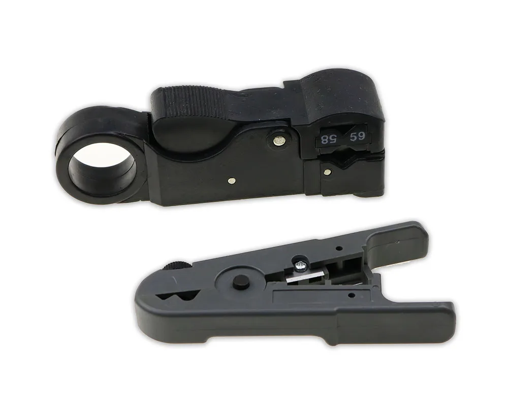 Wire stripper bulit in three blades, strip RG59/58/56/62/63/3V2V/4C/5C coax cables quickly;The cutter strip UTP/STP network