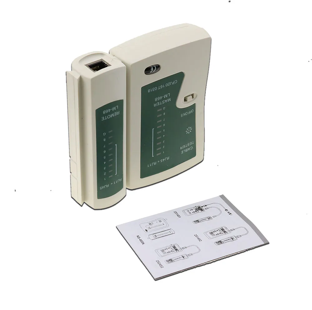 • MULTI-FUNCTION CABLE TESTER FOR TESTING TELEPHONE OR NETWORK CABLES: For RJ-11, RJ-12, RJ-45, CAT5, CAT5e, 10/100BaseT, TIA-568A/568B, AT T 258-A; 1, 2, 3, 4, 5, 6, 7, 8 and ground 9 LED lights. Powered by one 9V battery (not included).