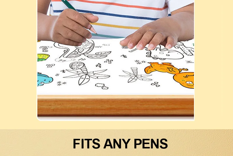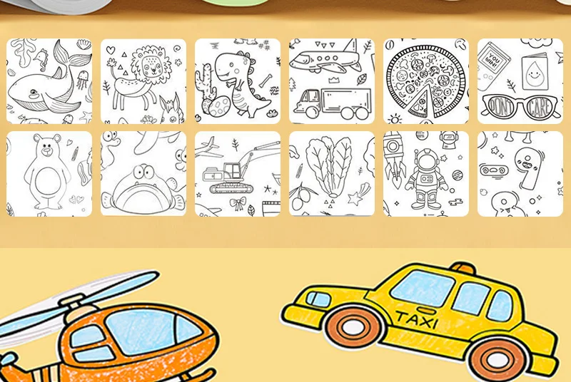 Unleash endless artistic adventures with giant coloring roll. Featuring 12 unique themes: Animal Safari, Dinosaur Park, Underwater World, Transportation, Alphabet & Numbers + 7 more surprise scenes – all with non-repeating patterns to spark daily discovery