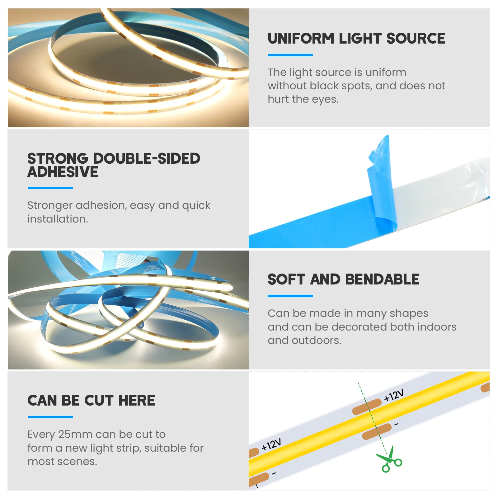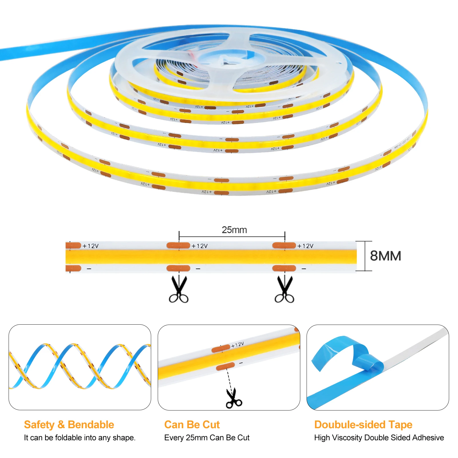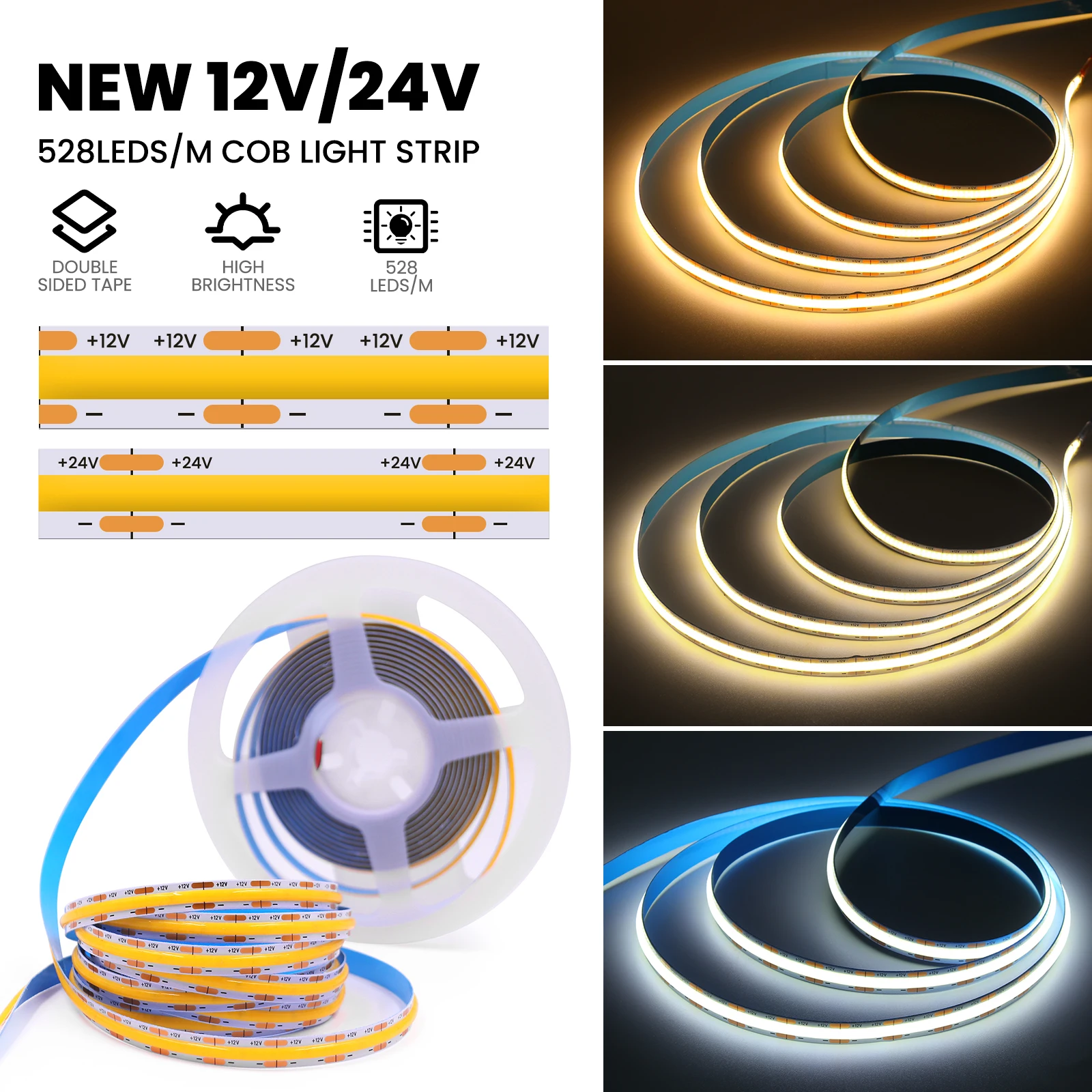 Lamp bead:COB,320/384/480/528/600LEDs/m,1600LEDs/m