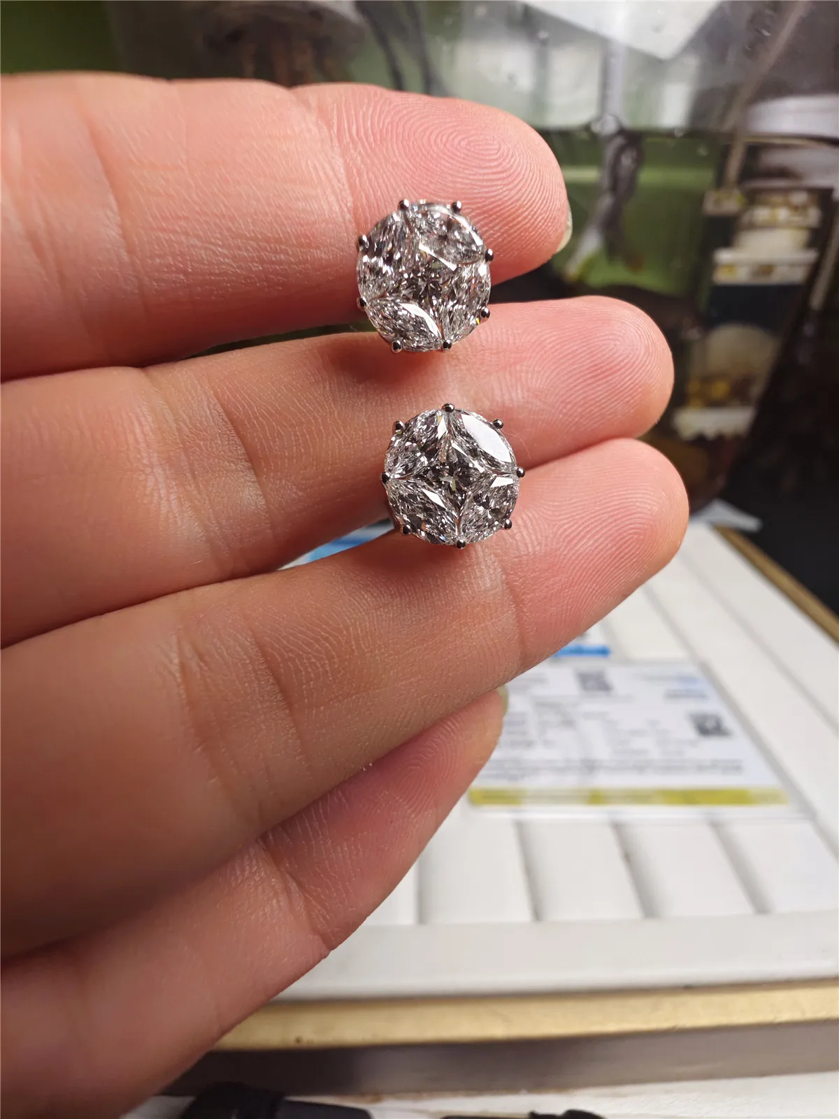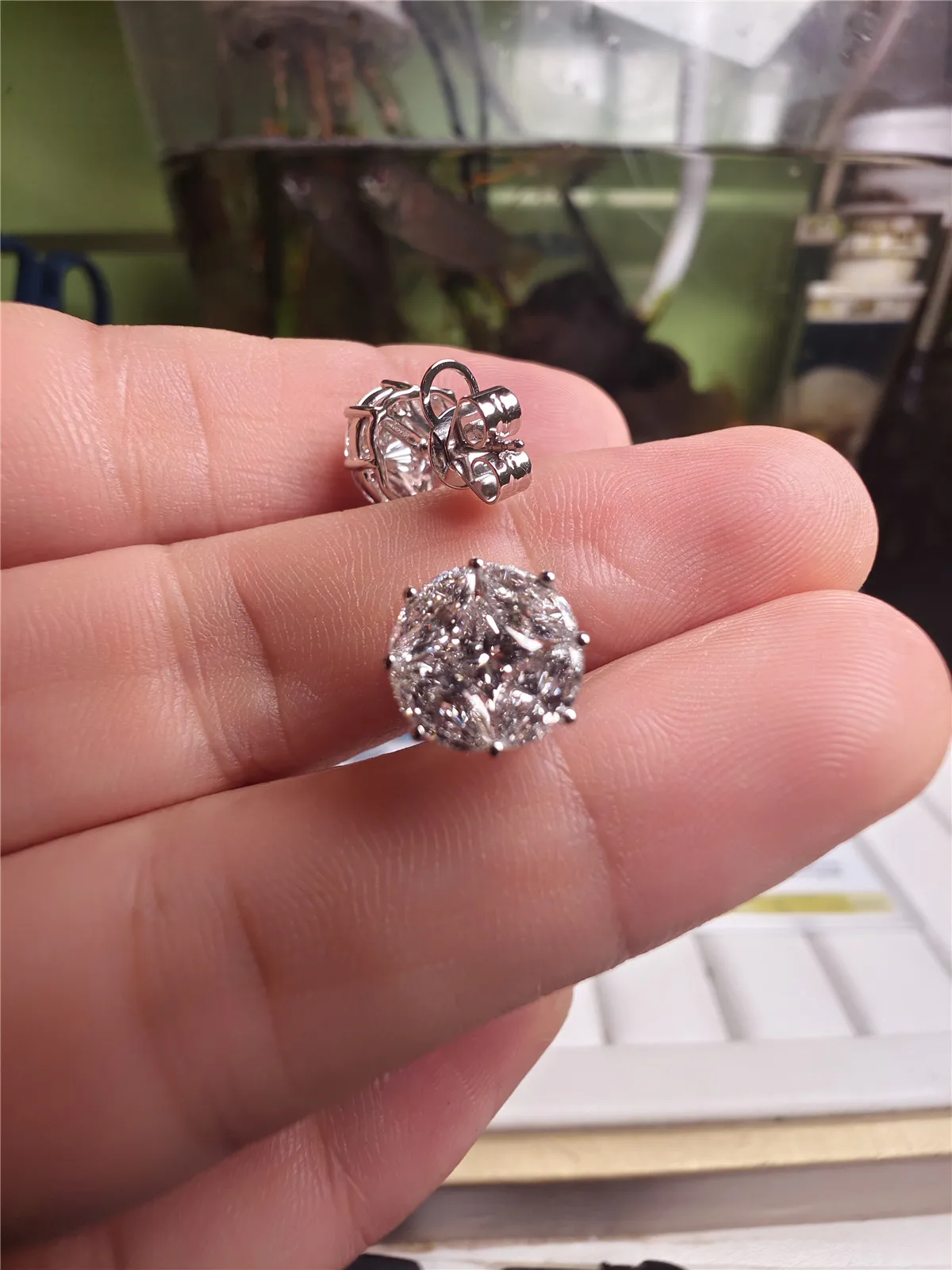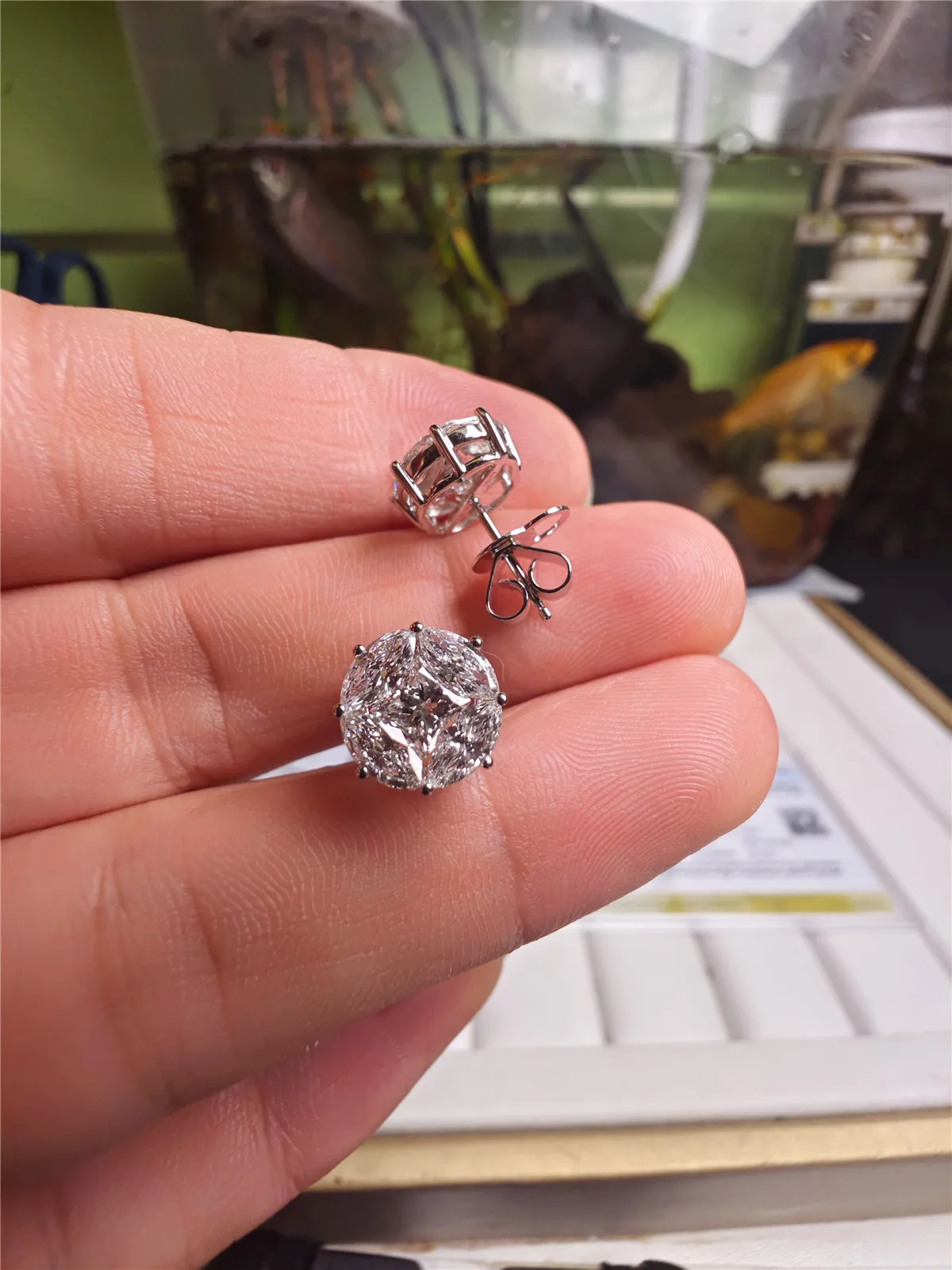 18K solid real gold lab grown diamond horse eye princess shape set 5CT diamond earrings factory wholesale custom platinum