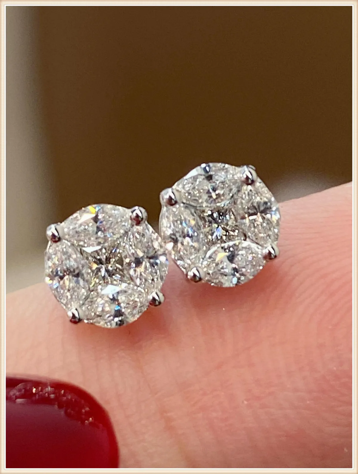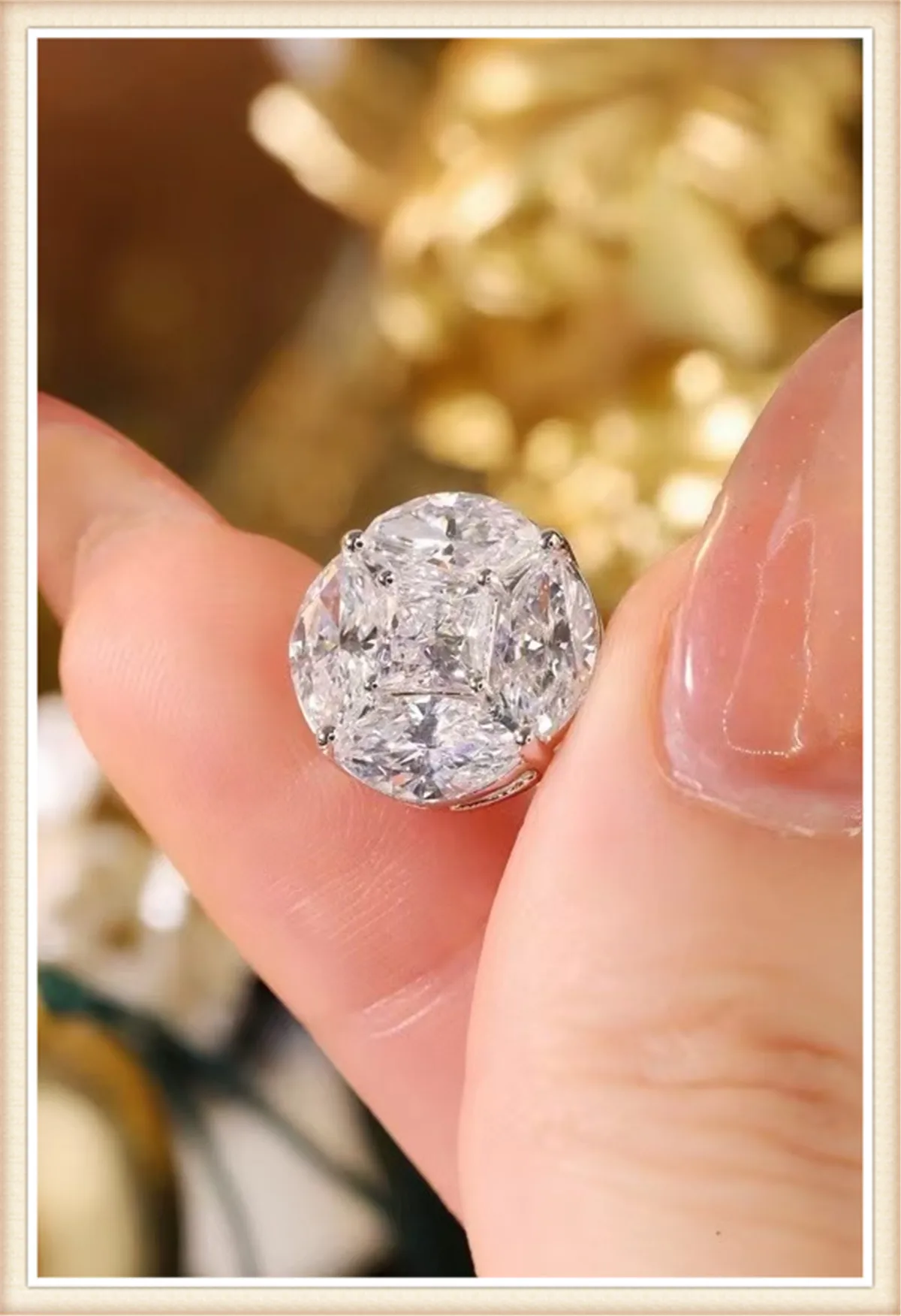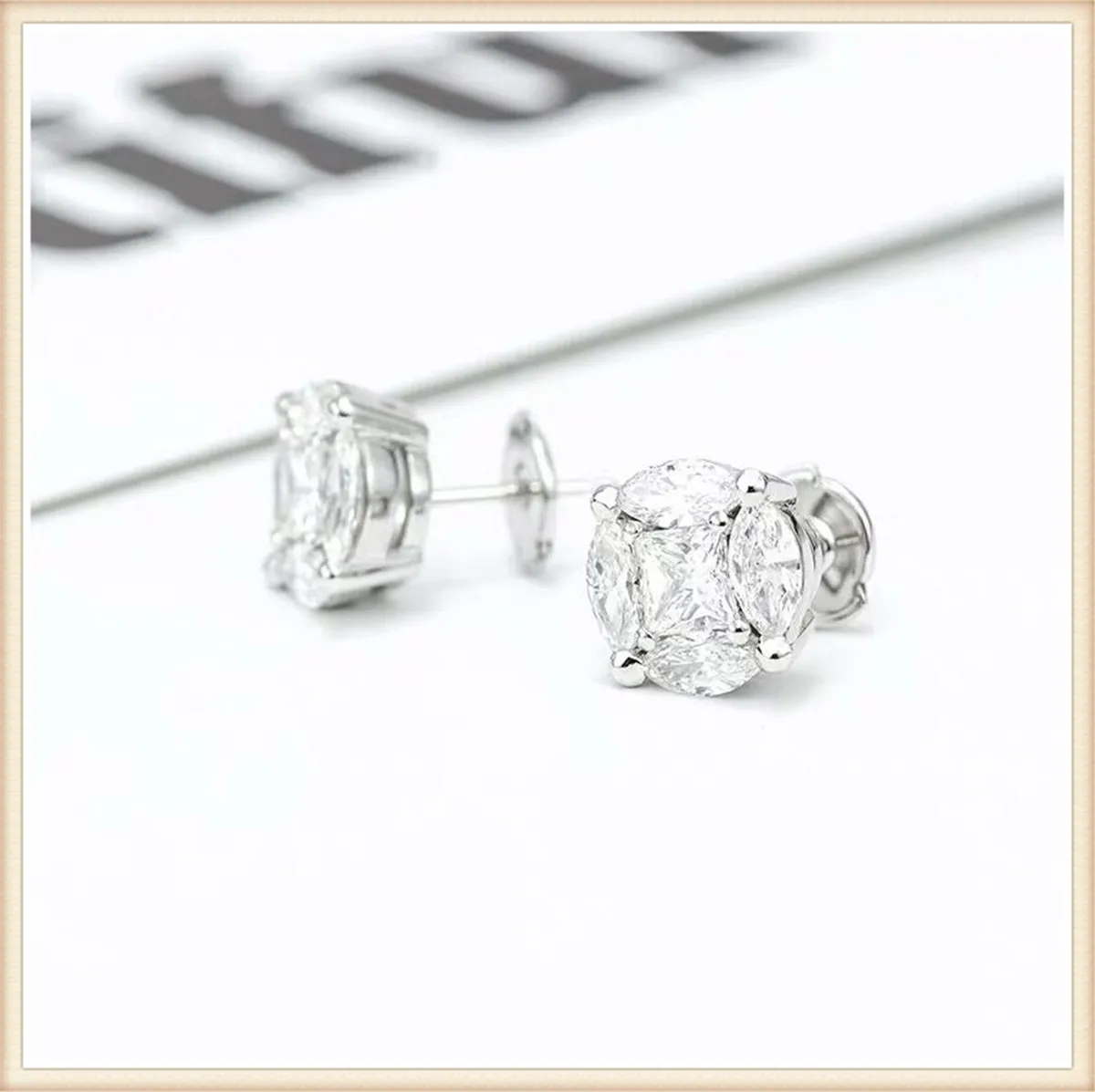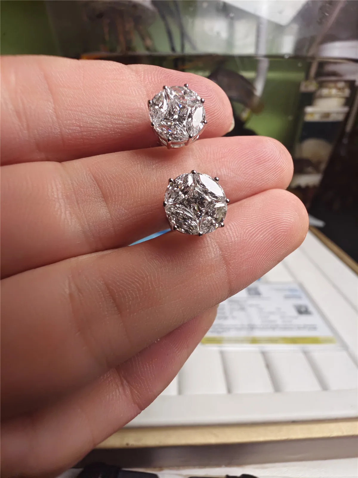 18K solid real gold lab grown diamond horse eye princess shape set 5CT diamond earrings factory wholesale custom platinum