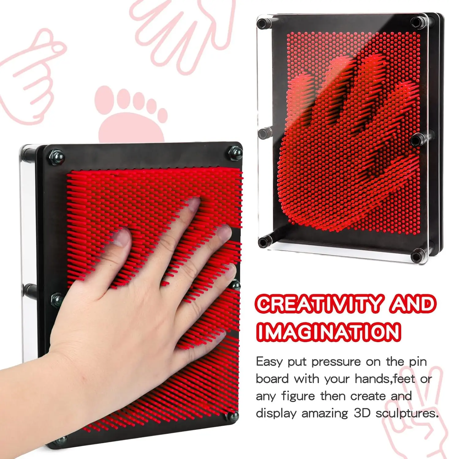 • 【3D PIN TOY】Pin art sensory toy is ideal for kids boys girls, you can press an object into the wall of this pin toy impression to leave an impressional profile, like a Batman toy statue, dinosaur toys, your handprint or facial contour and so on. ENJSD 3d pin art toy will create inimaginable 3d sculptures. The pin needle toy inspires children’s boundless creativity and imagination.