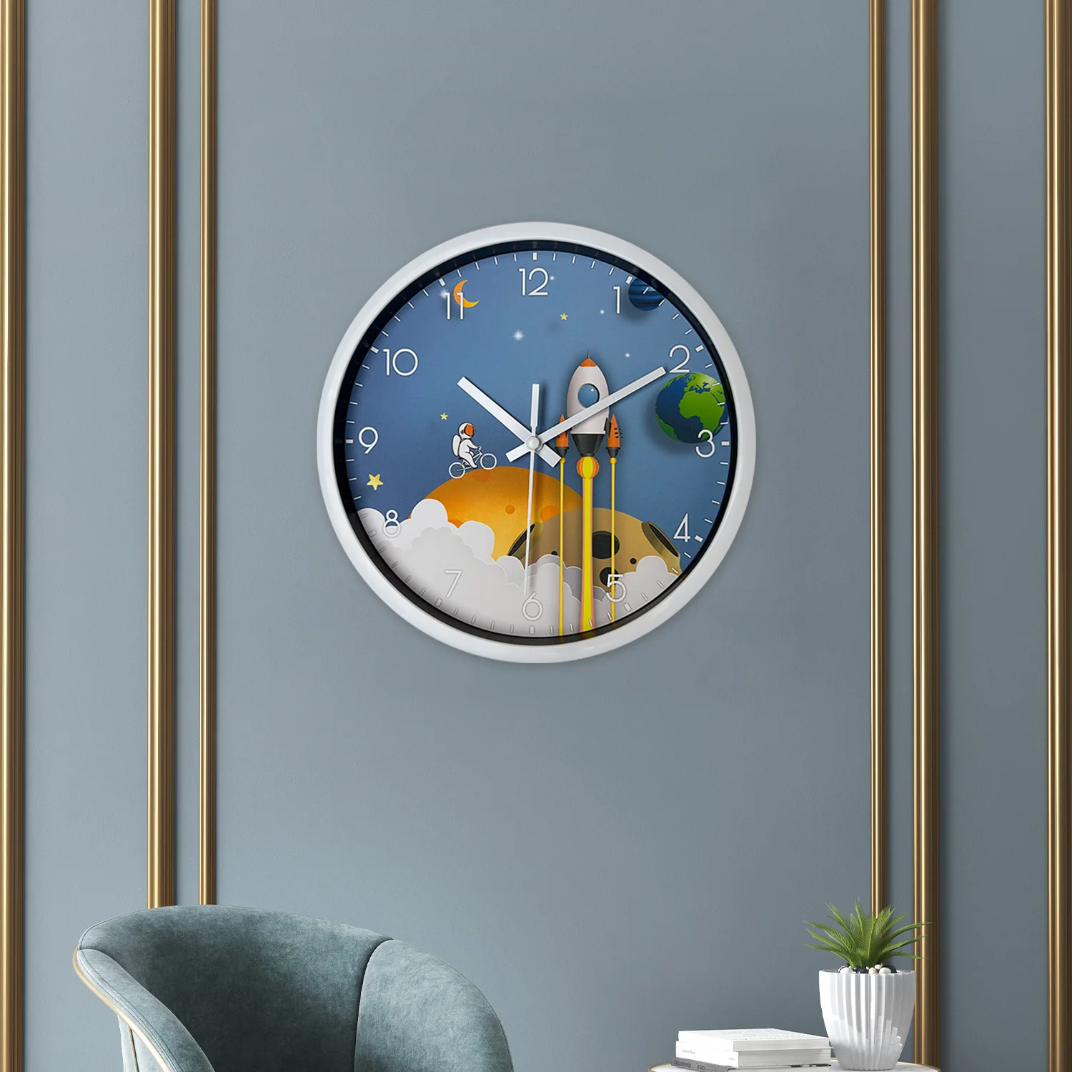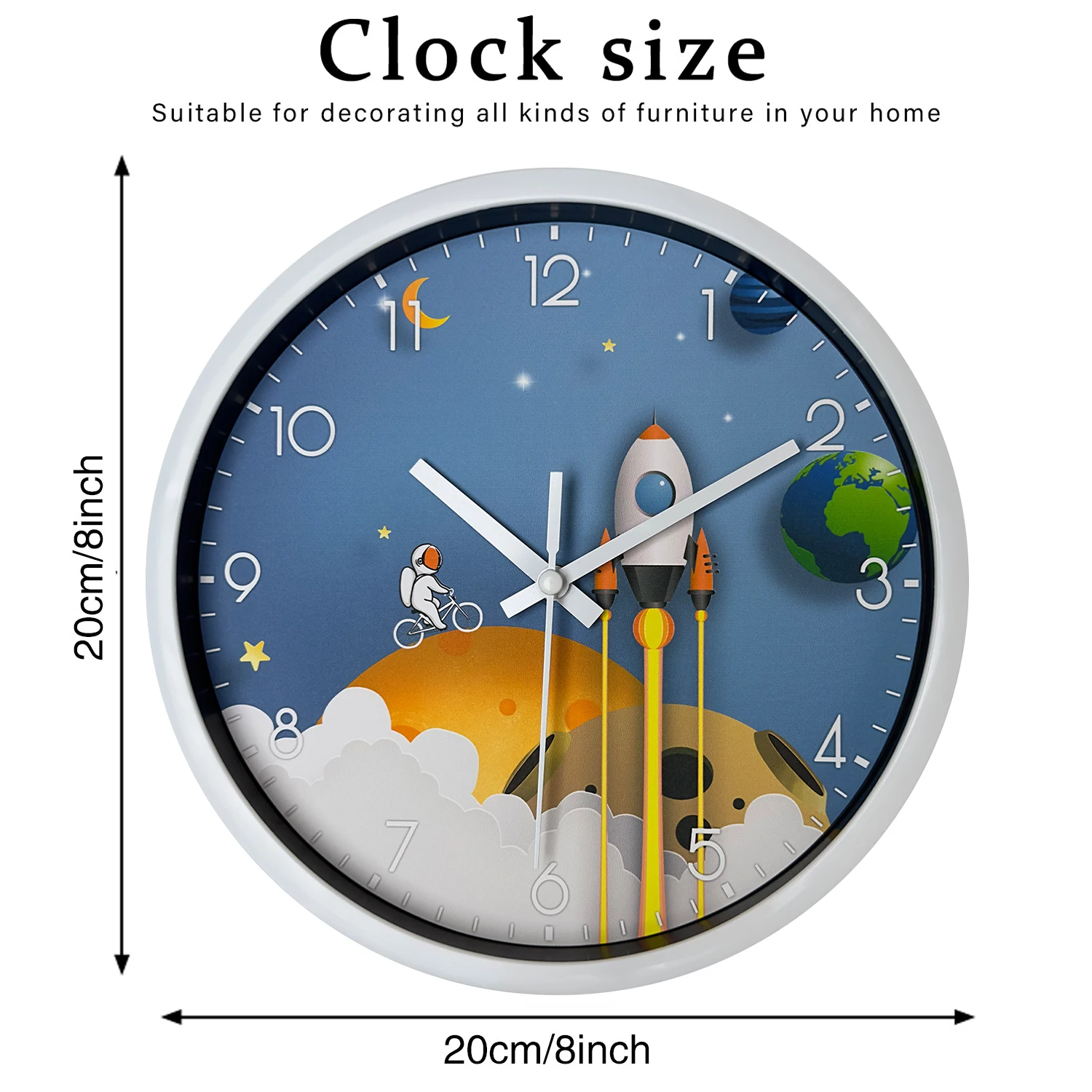 1pc 8-inch children cartoon astronaut wall clock, silent clock for home, living room, bedroom, study, bathroom decoration