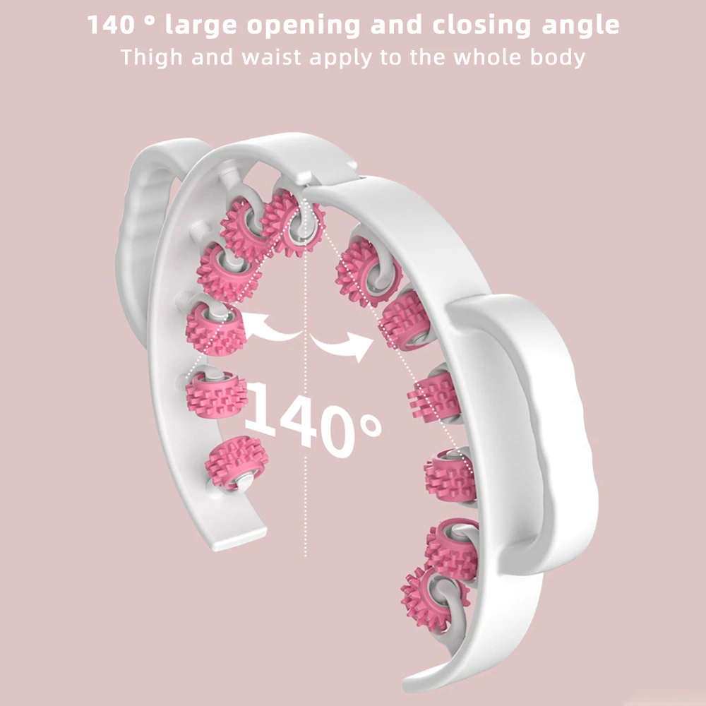 About this item 1. [ERGONOMIC DESIGN] – The humanized handle design ensures a comfortable and non-slip grip, while the unique shaped 3D surface massage provides optimal irritation to your muscles.2. [REDUCE SORENESS] – Ideal for relieving muscle tension, reducing discomfort, soreness, and accelerating muscle recovery.Can be used to massage legs, calves, arms, neck, and more.3. [VERSATILE USE] – Suitable for runners, athletes, yoga enthusiasts, Pilates practitioners, swimmers, dancers, and fitness fans.4. [ADJUSTABLE WIDTH] – The leg massager is 180 degrees adjustable, allowing you to customize the width according to your leg size. The small opening wraps around the thigh, while the large opening fits the hip.5. [RUBBER MATERIAL] – Constructed with eco-friendly rubber and ABS, this thigh massager is odorless, resilient, elastic, and wear-resistant, ensuring -lasting use.This cellulite remover requires just a few minutes a day for effective results. The characteristic form of this body roller for cellulite allows you to cover almost entirely the area to be treated, e.g. wrapping the thigh or allowing the treatment of both buttocks. It's a fantastic cellulite leg roller.