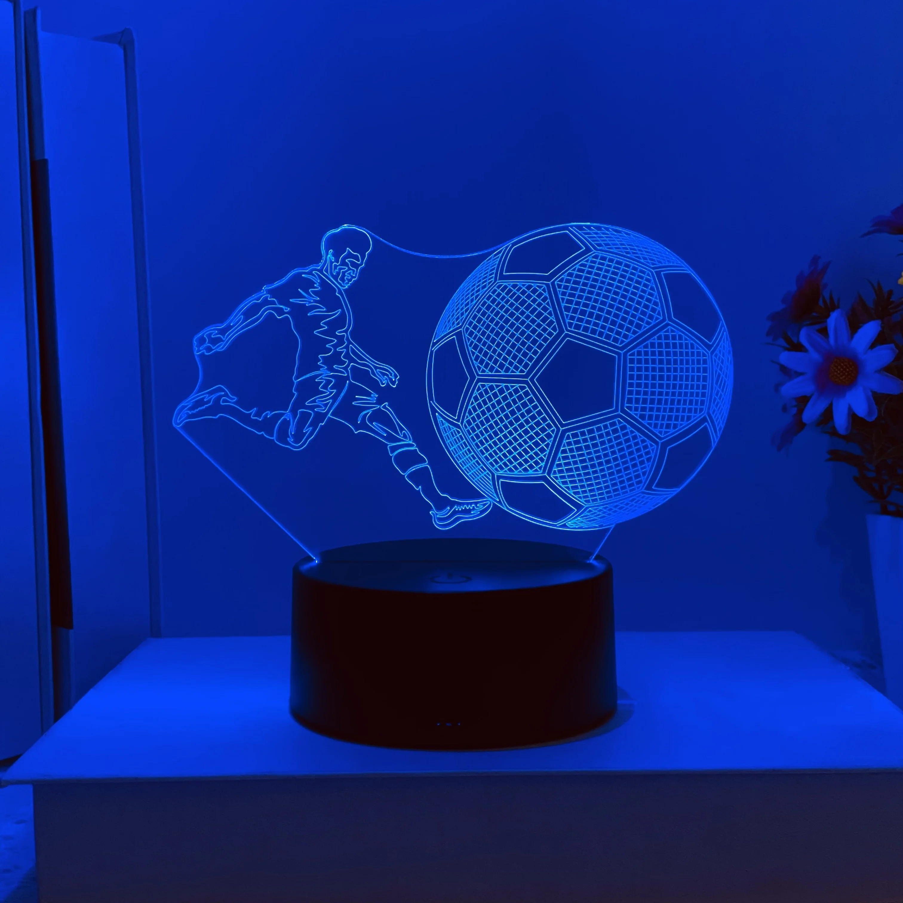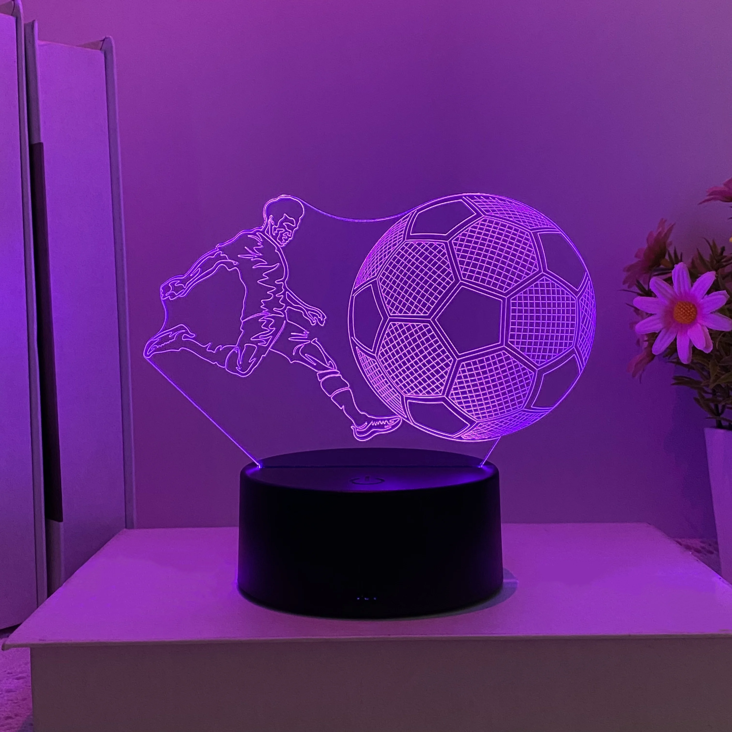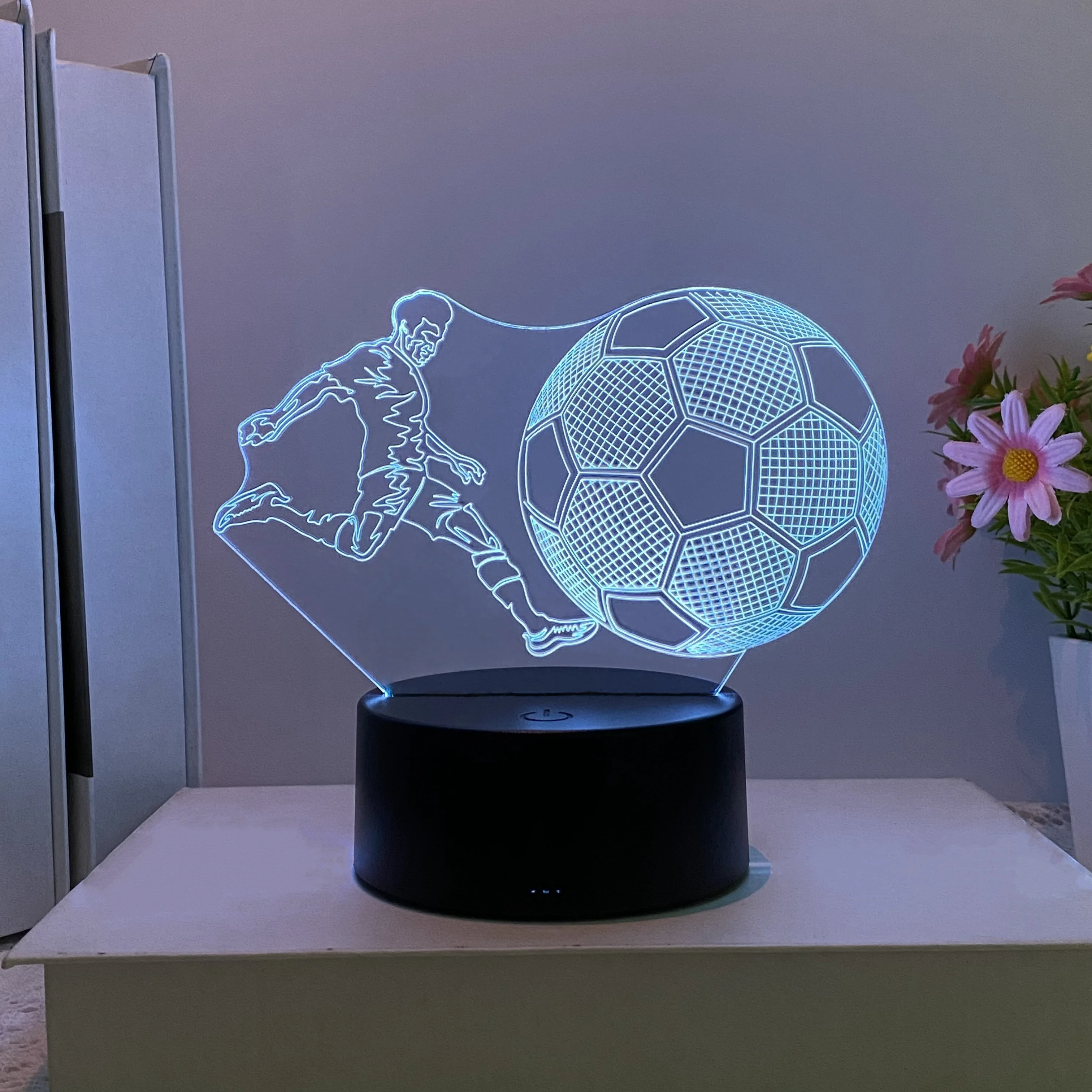 The 3D nightlight is a flat acrylic panel with etched lines for a 3D effect.