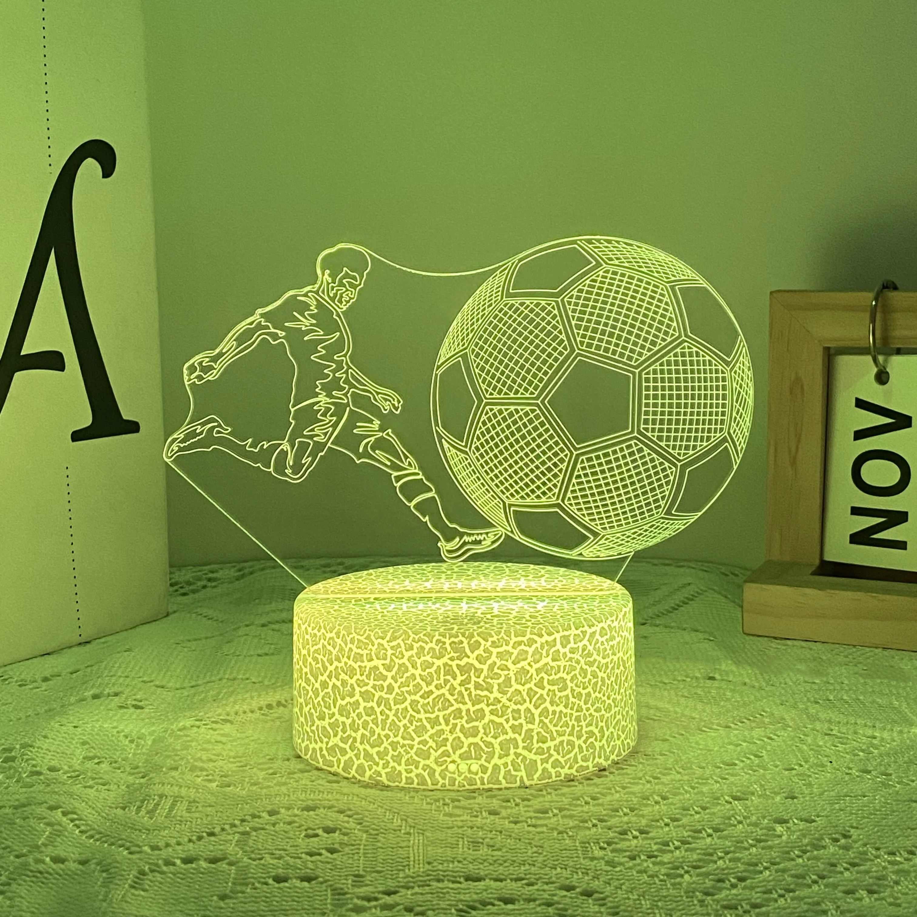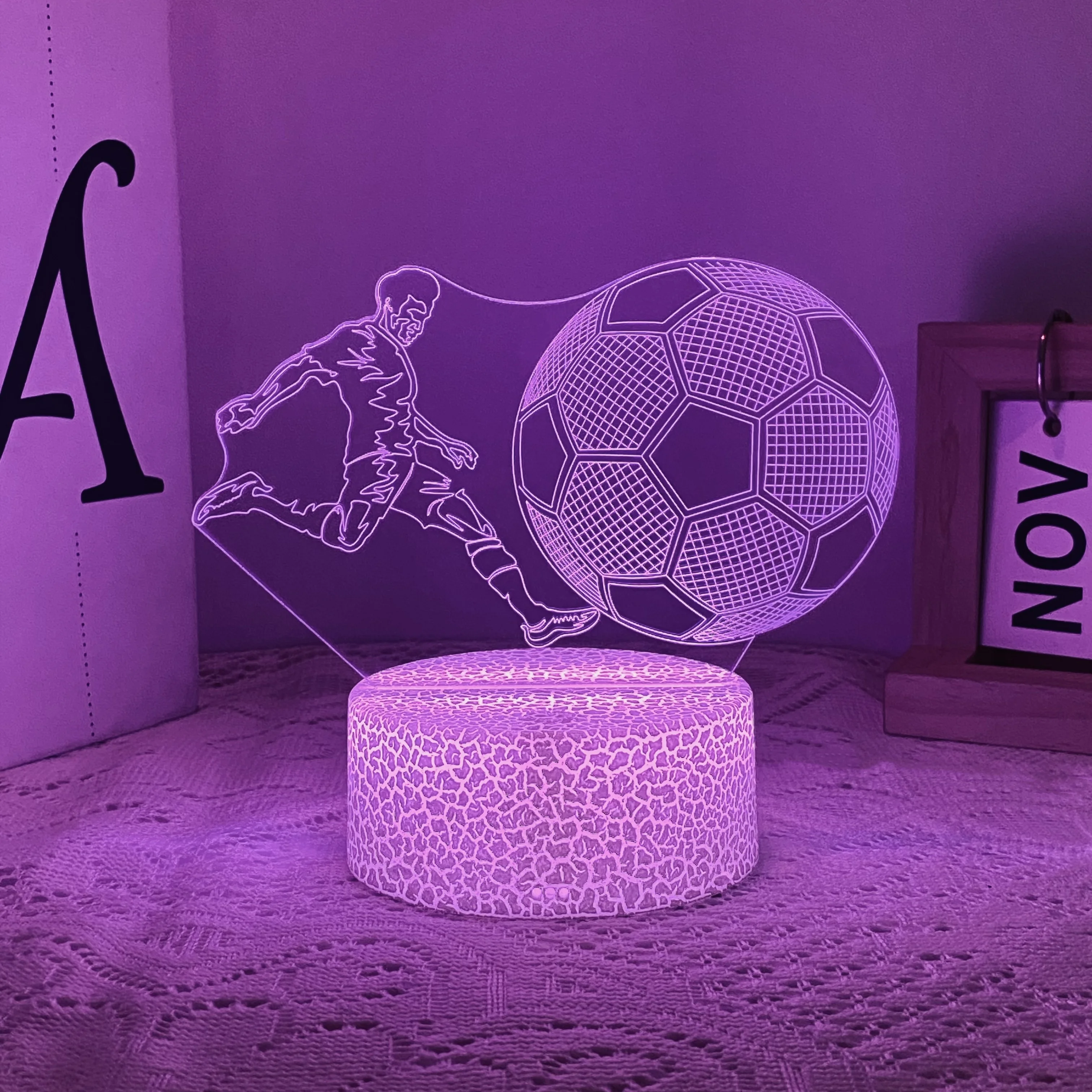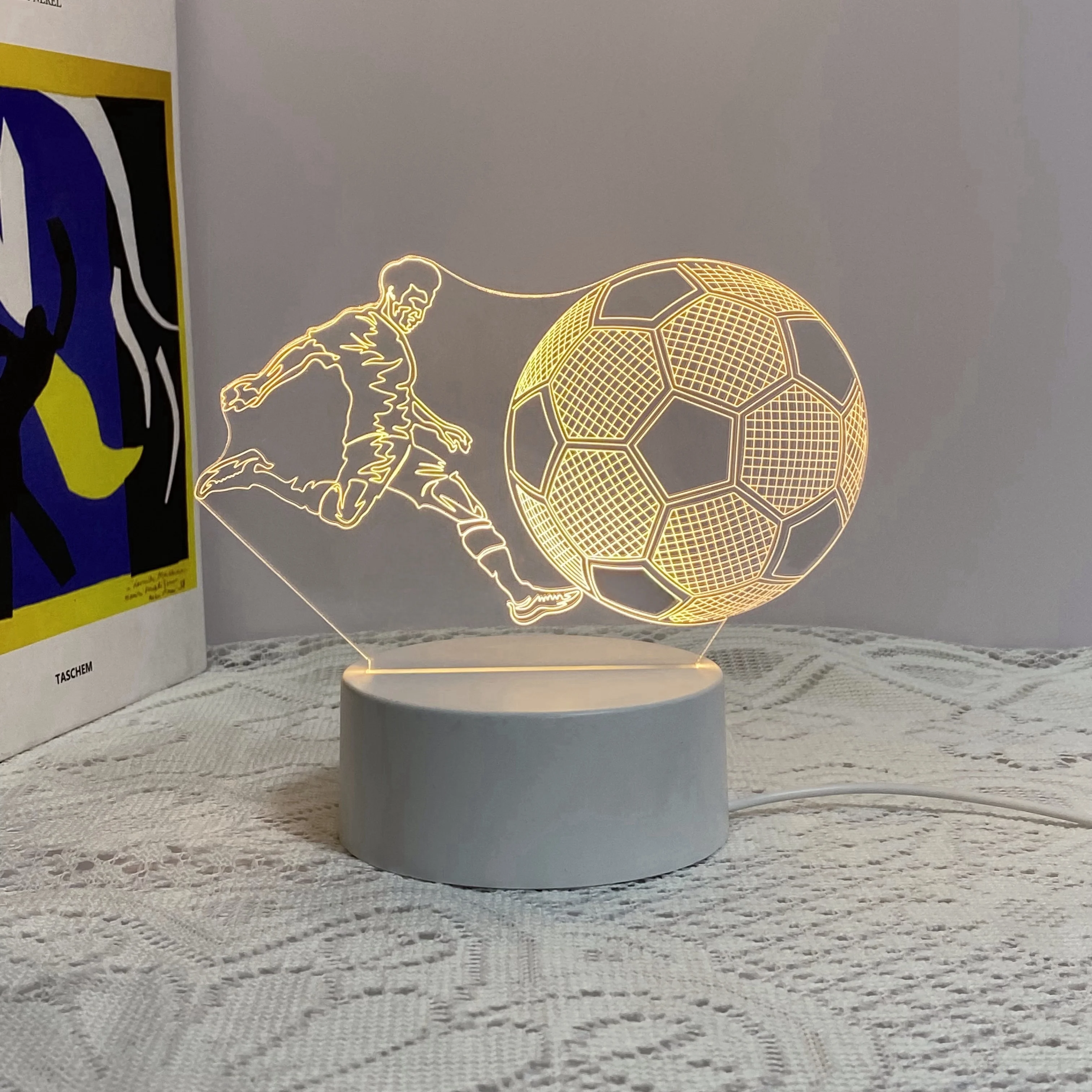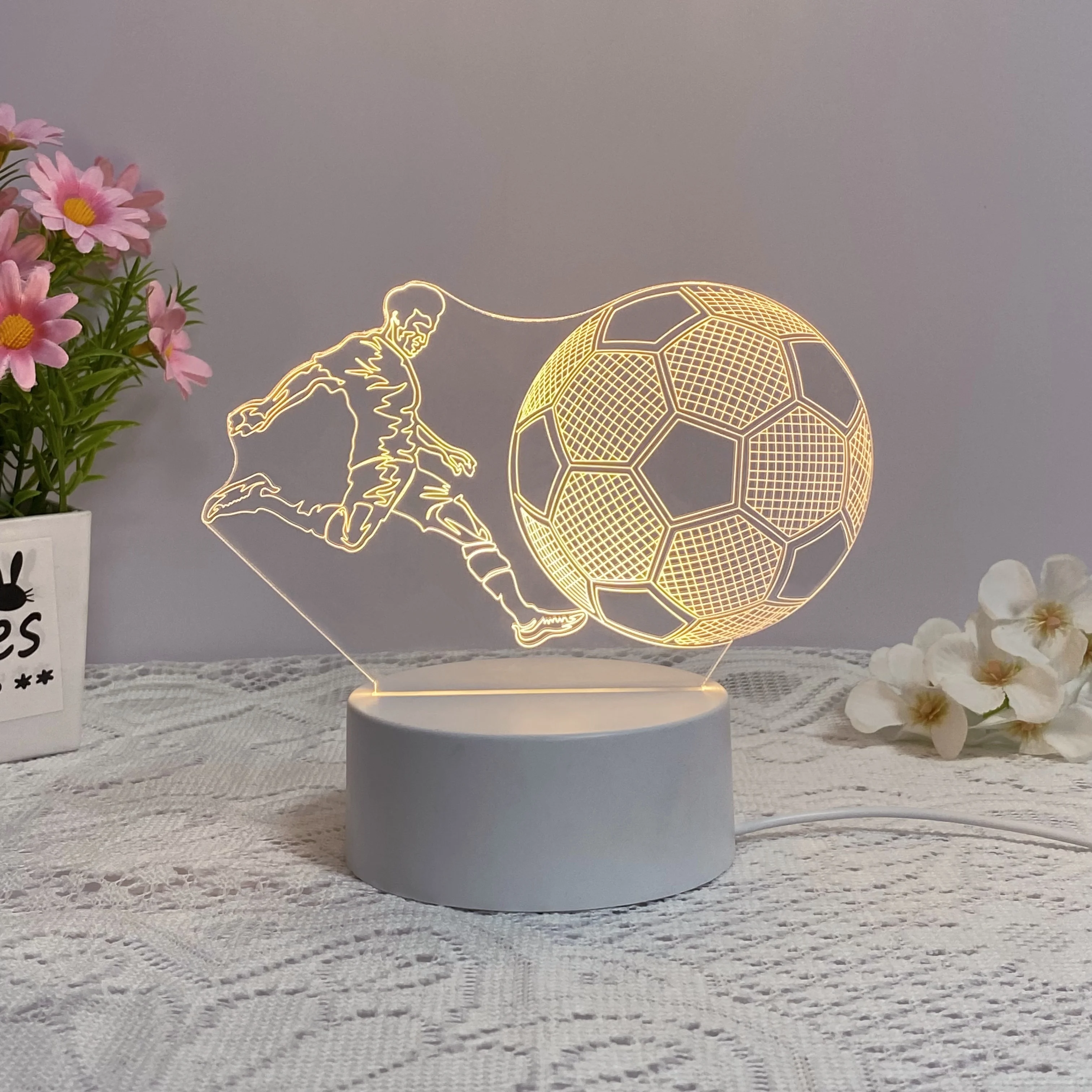 The 3D nightlight is a flat acrylic panel with etched lines for a 3D effect.