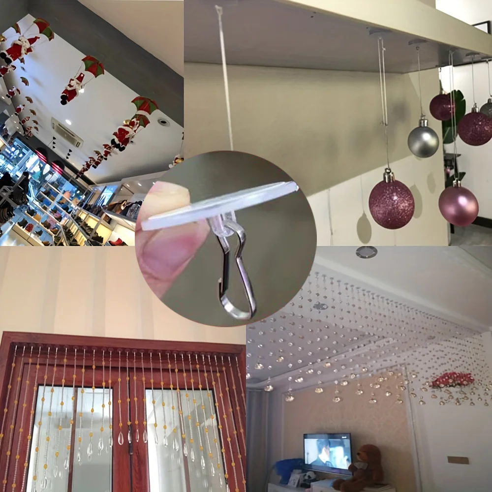 1. **Transparent and Discreet**: These ceiling hooks are designed to be transparent, blending seamlessly with any decor. Their unobtrusive appearance ensures that your Christmas ornaments and decorations take center stage without any visible distractions.