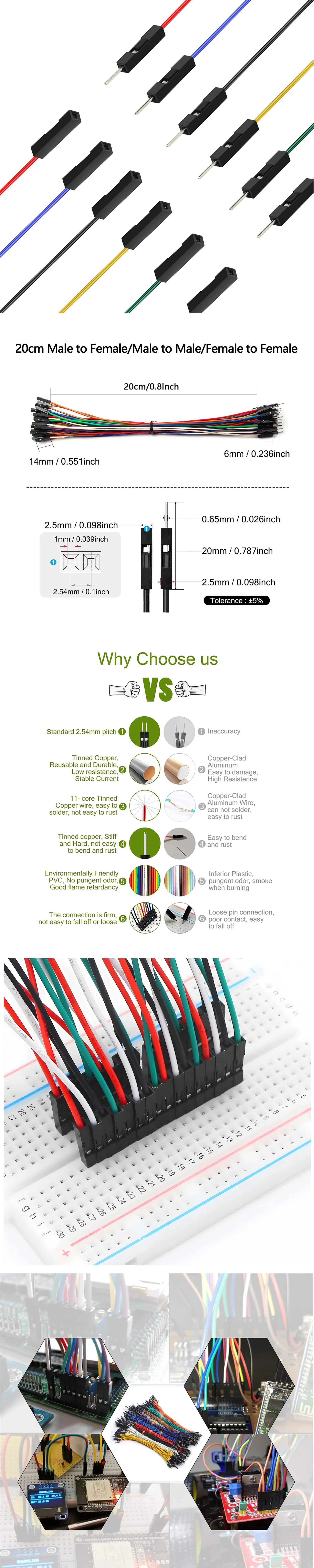 The head of the cables is stronger, is not easy to fall off and damage.Jump Wires are flexible, durable, reusable, easy to trace, easy to connect and disconnect.