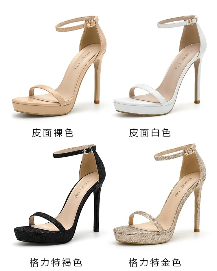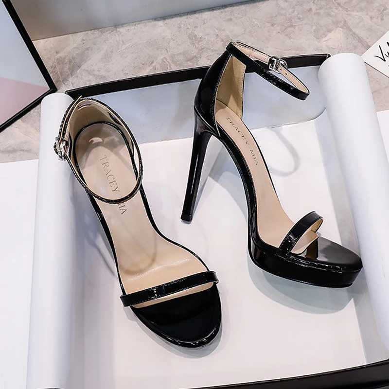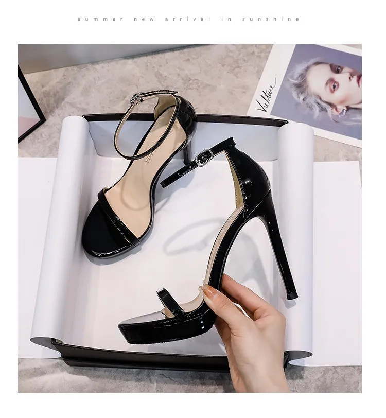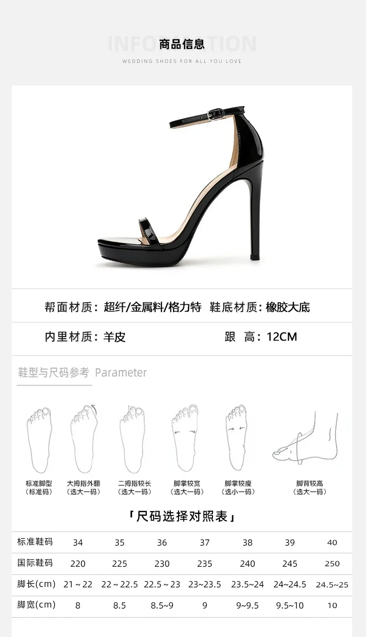 2024 Fashion New Modern Round Toe Women’s Shoes Summer Patent Leather Suede Glitter Platform High Heels Sexy Back Strap Sandals