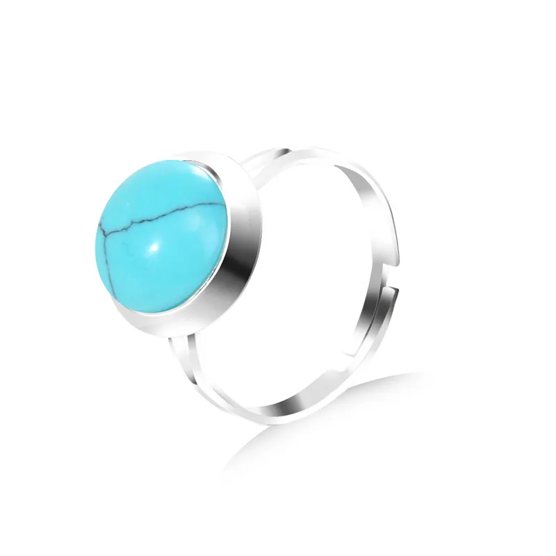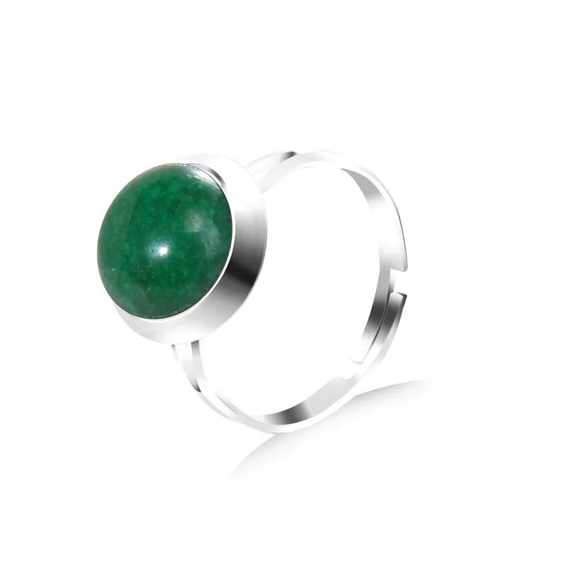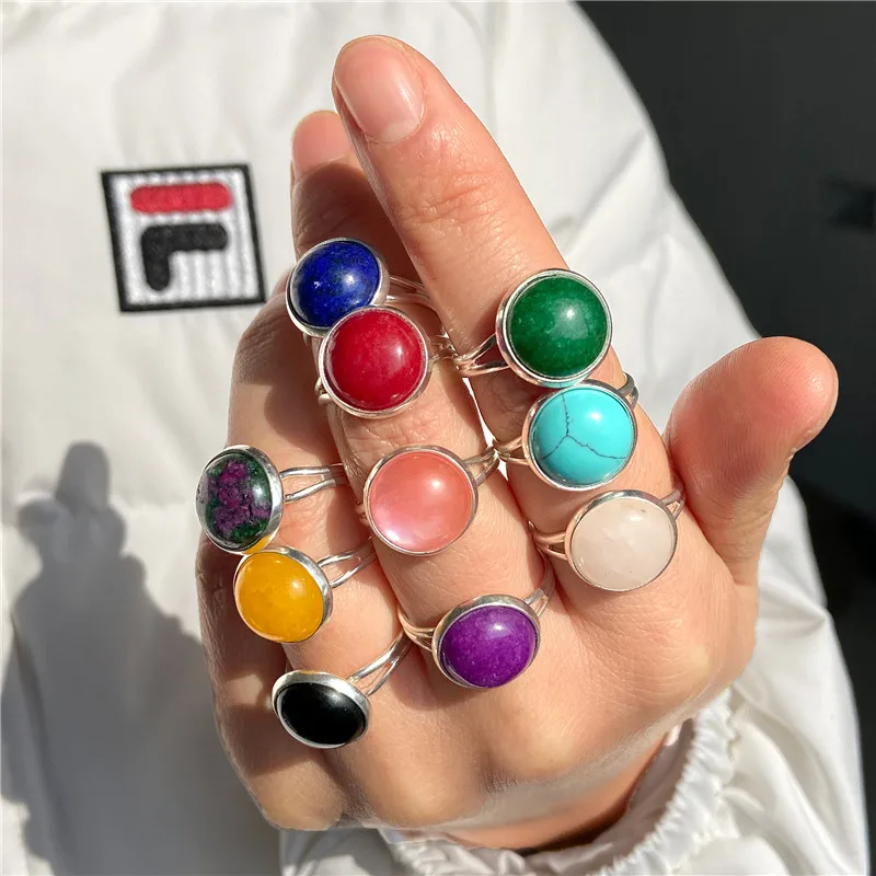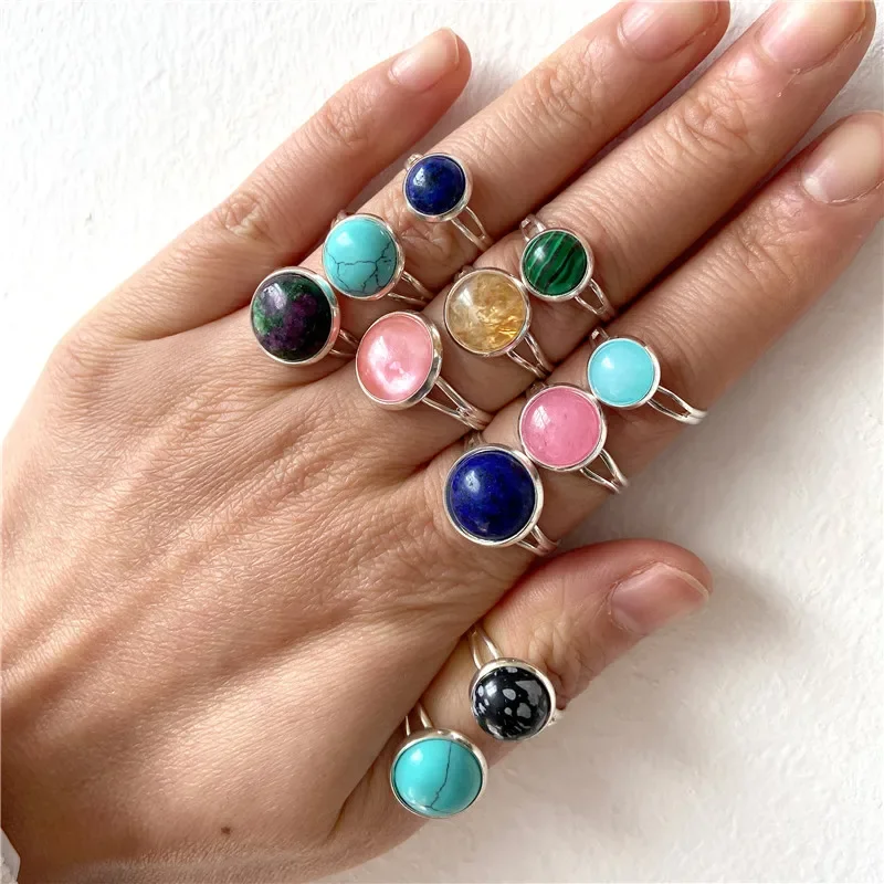 2024 New Natural Cabochon Stone Bead Ring 8/10/12MM Agates Howlite Carnelian Gem Stone Ring Adjustable Silver Color Fingerring