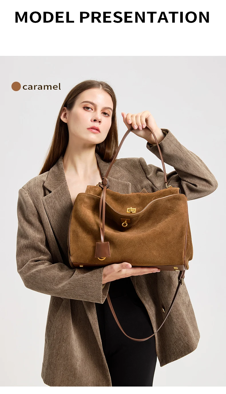 2025 Autumn Winter Women’s Suede genuine leather Bag Shoulder Handbag Large Capacity Single Tote Bag Handbag Luxury Designer Bag