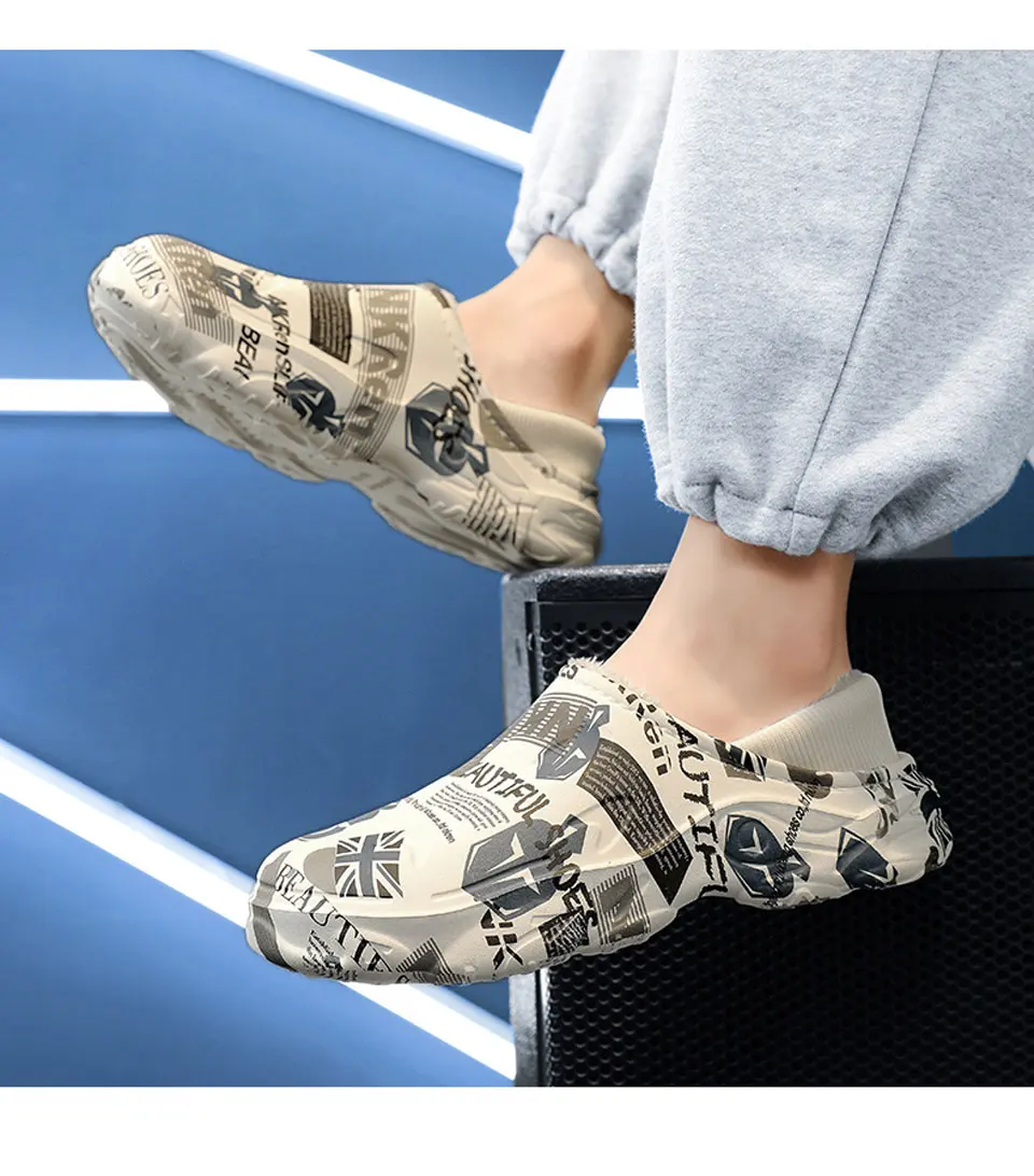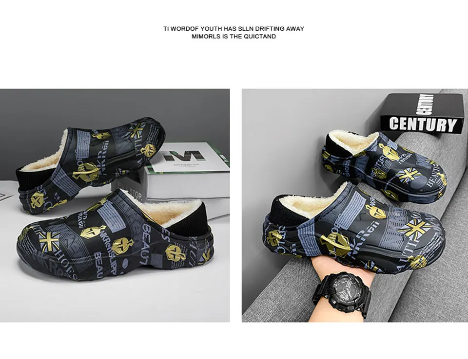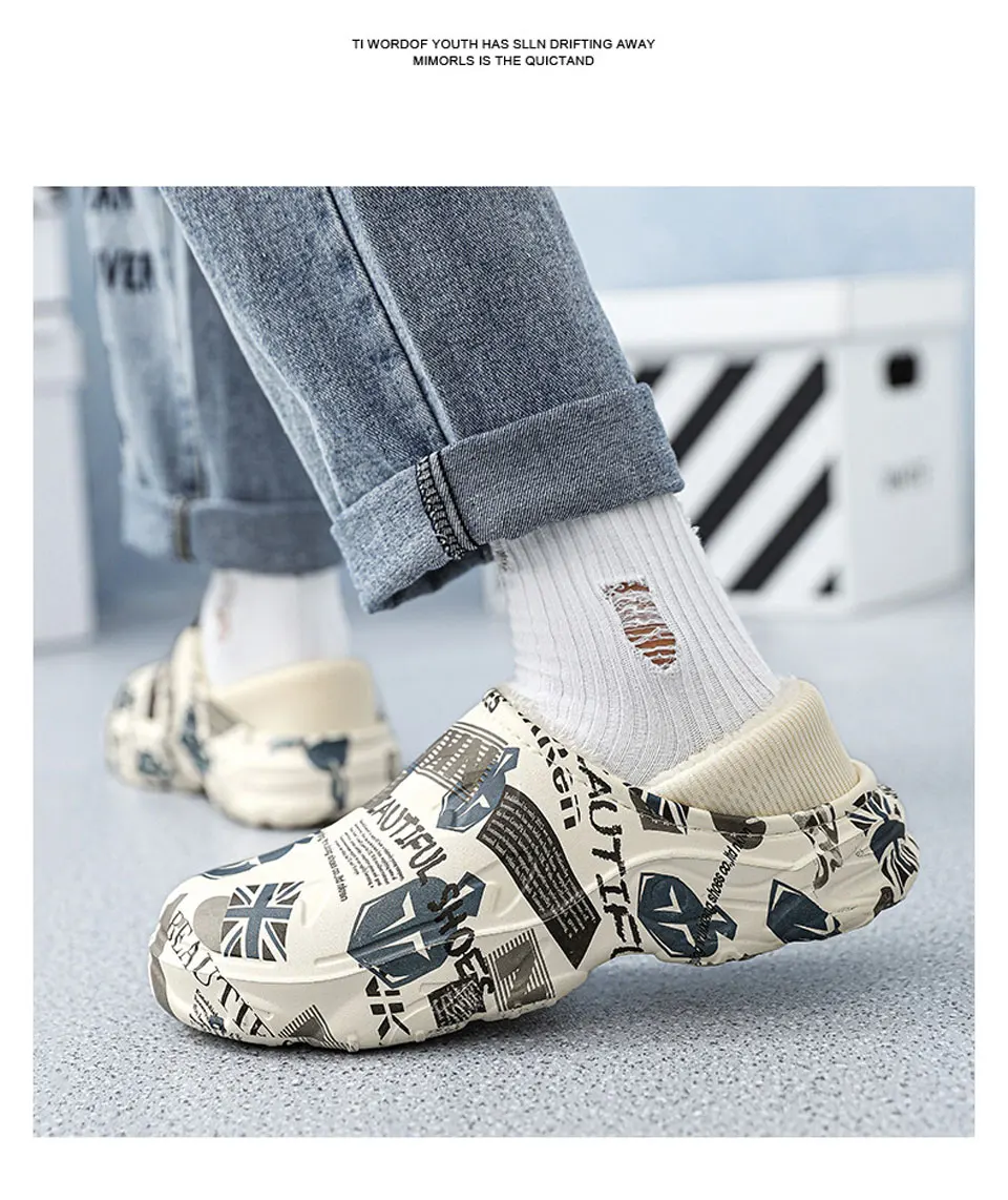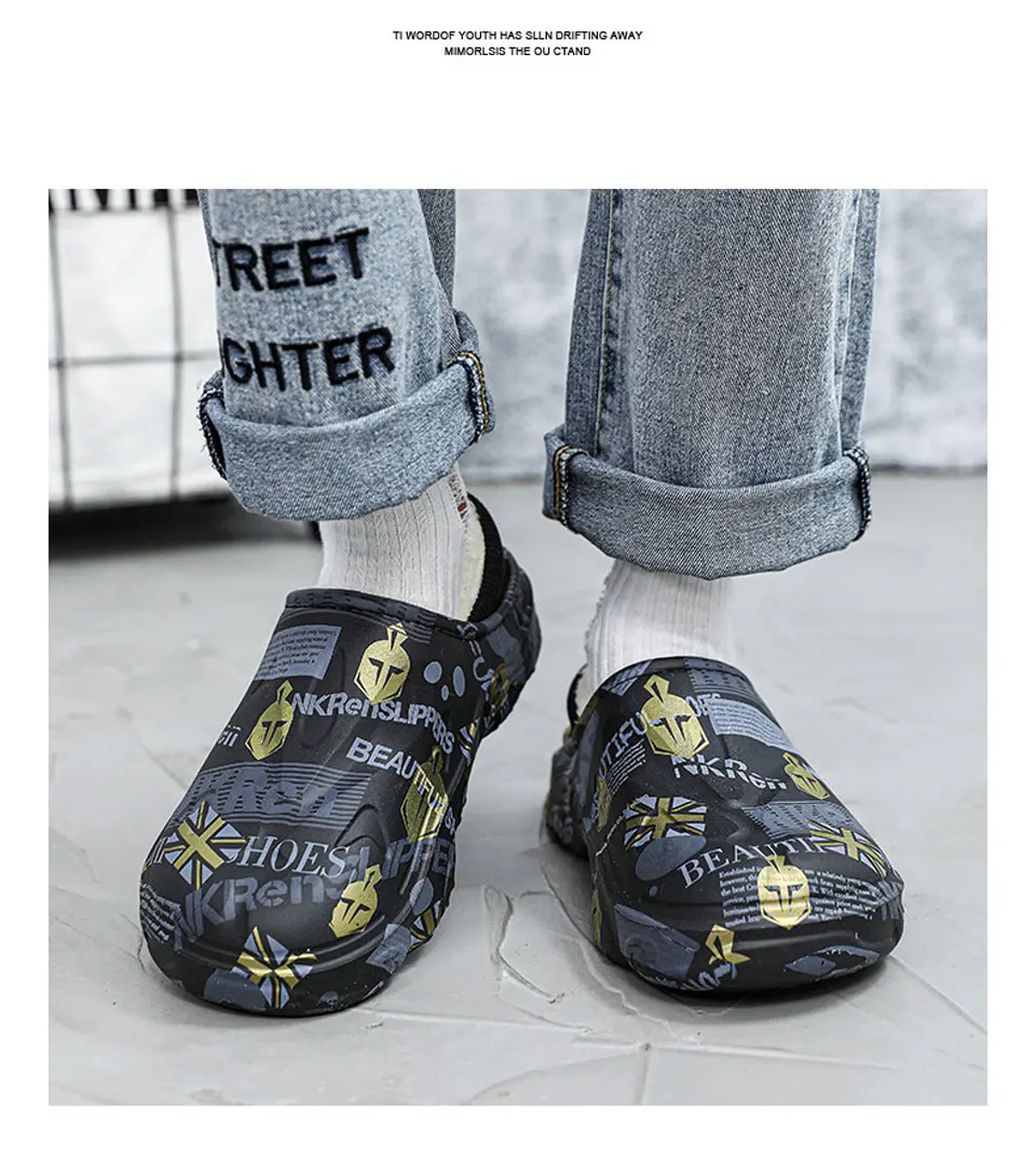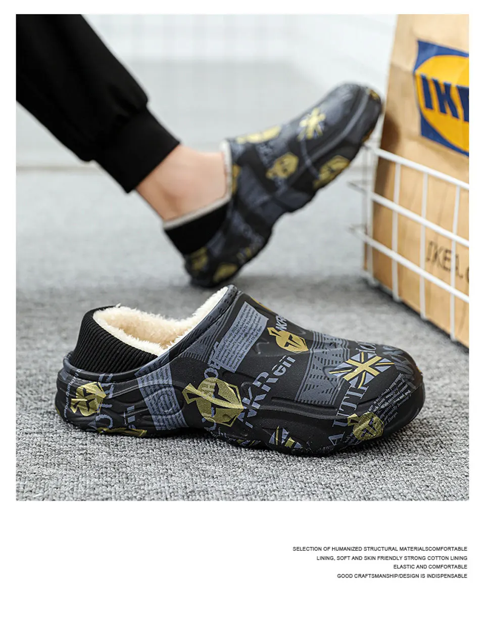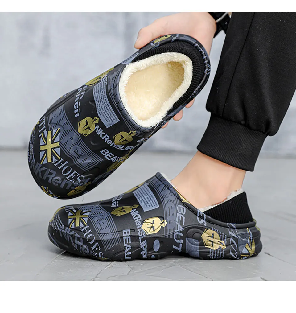 2025 Winter New Stylish Men Slippers Warm Home Slippers Non-Slip Male Cotton Shoes Waterproof Soft EVA Fashion Slippers Big Size