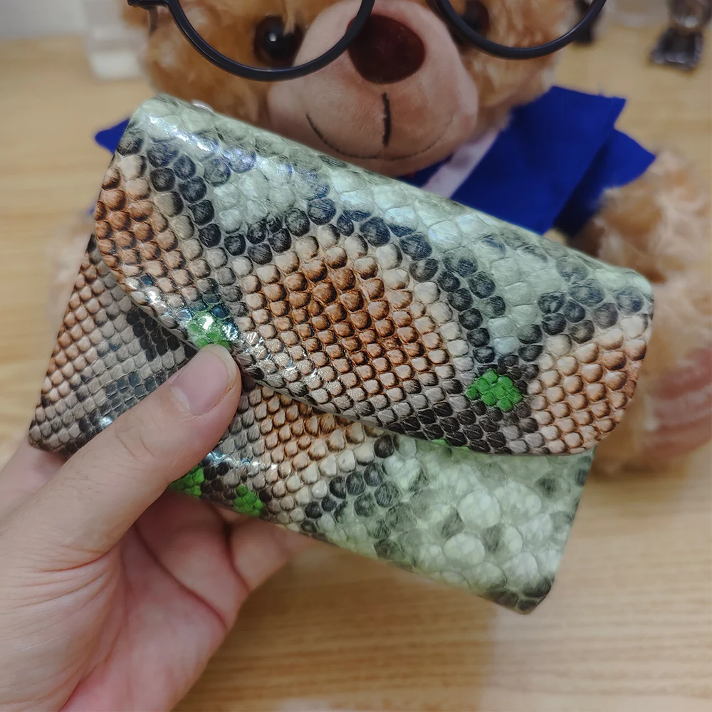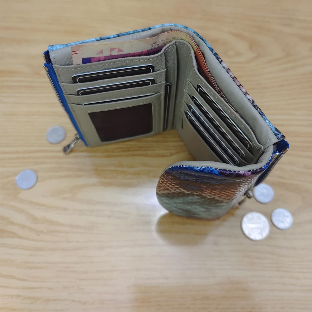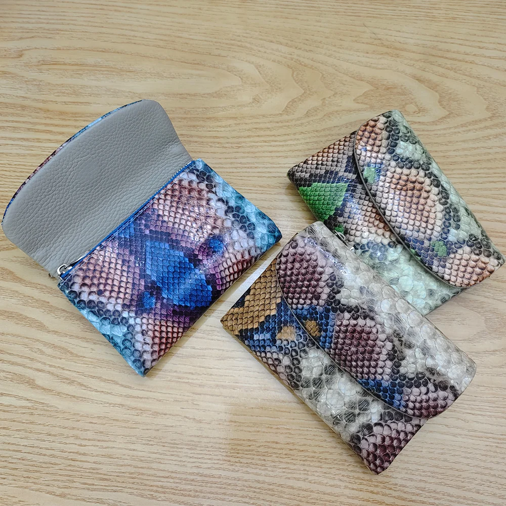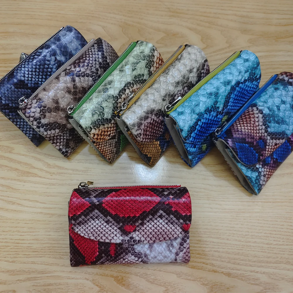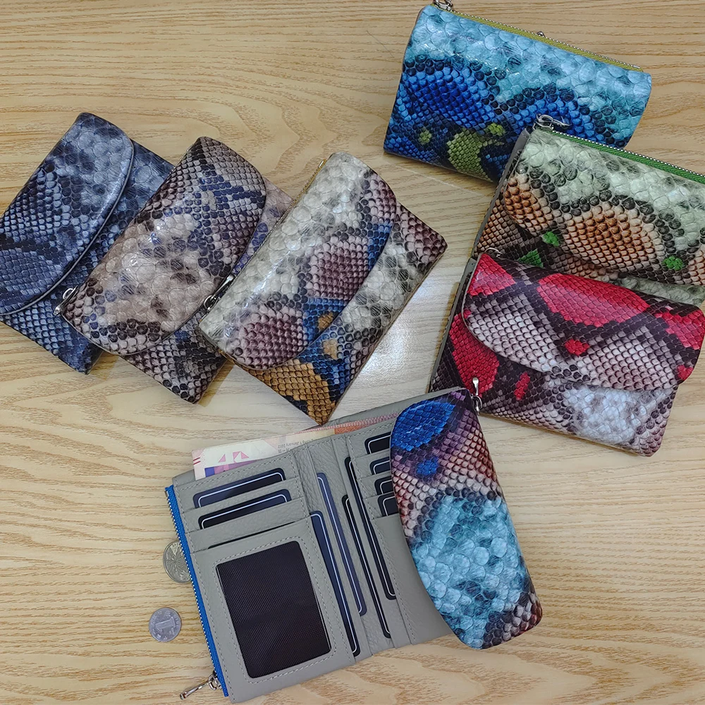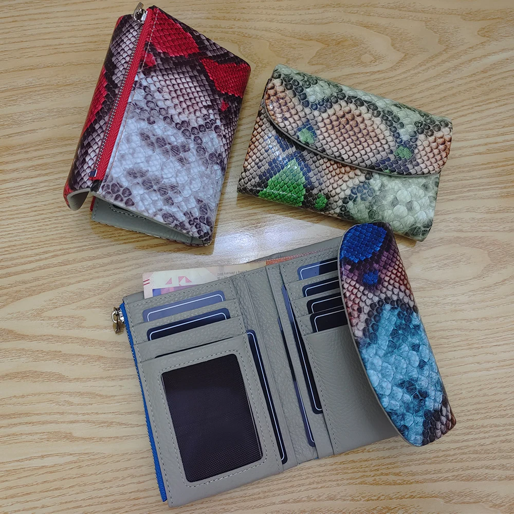 2025AW New Exotic Colorful Python Pattern Cow Leather Short Wallet Women Trendy ID Card Holders Money Bag Purse Gift for Ladies