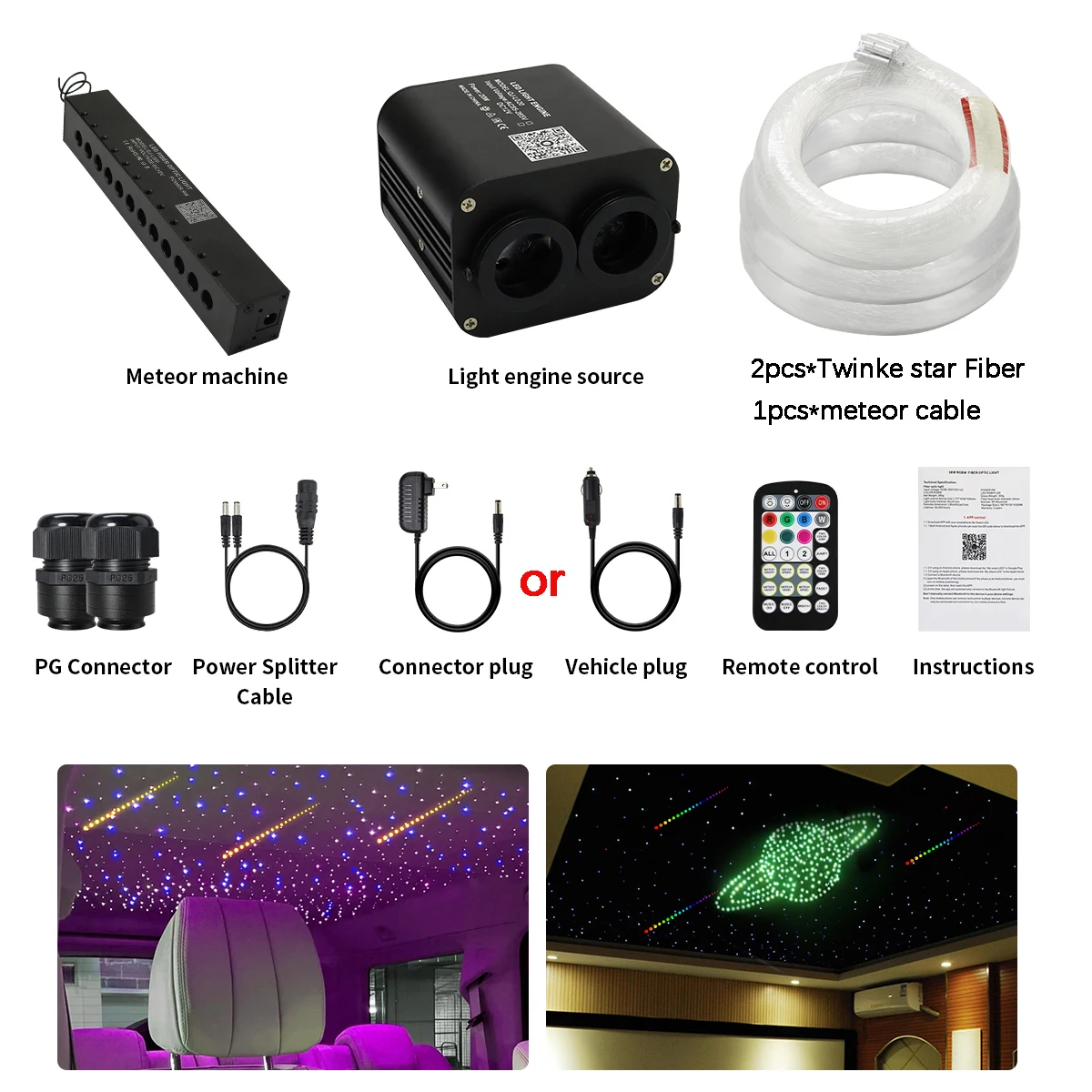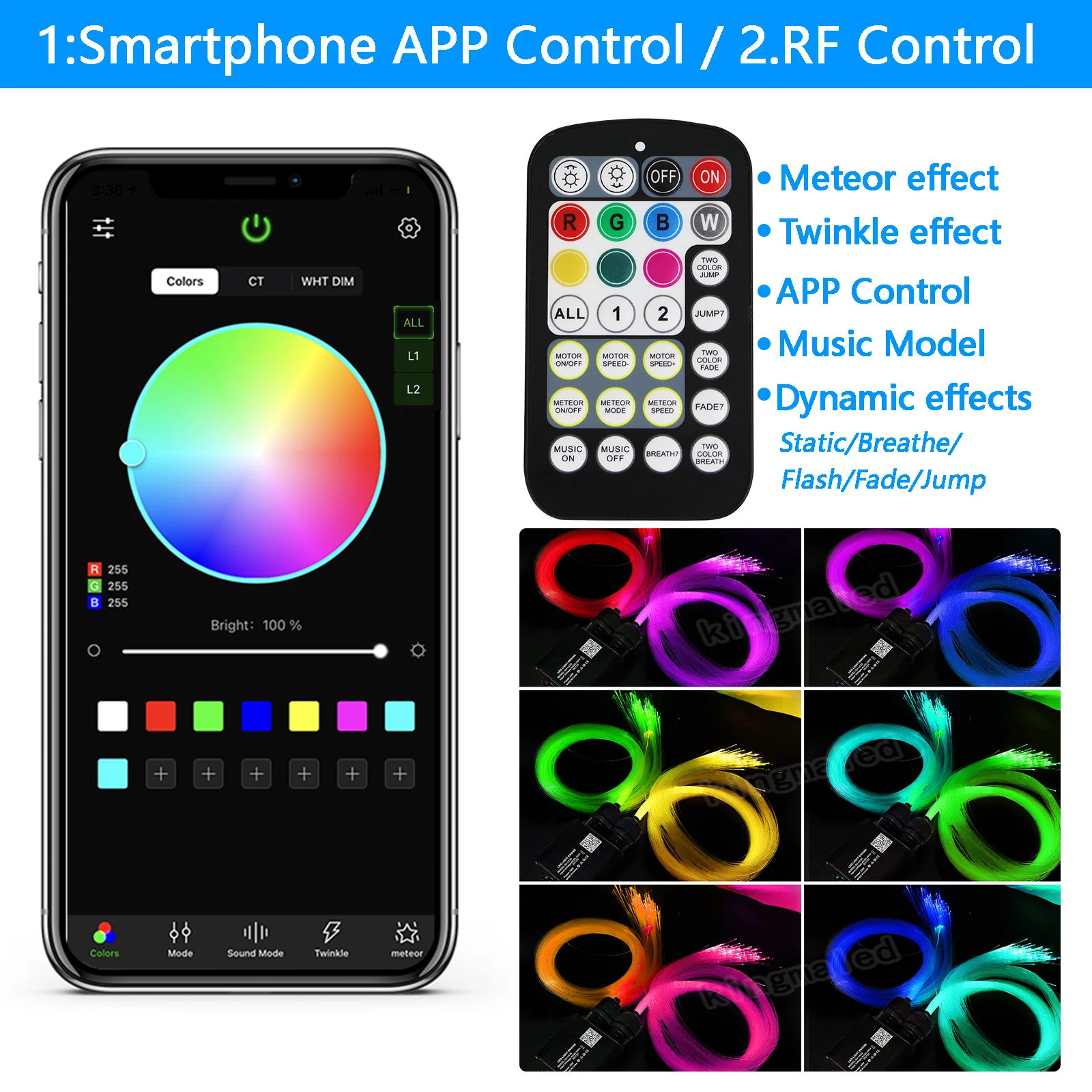20W Twinkle RGBW Car Star Roof Lightwith Meteor effect app Fiber Optic Star Ceiling Light Kit for home ceiling light optical fiber