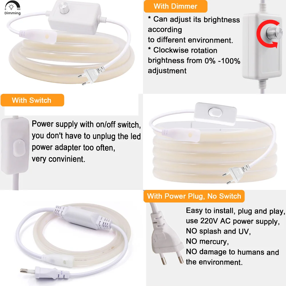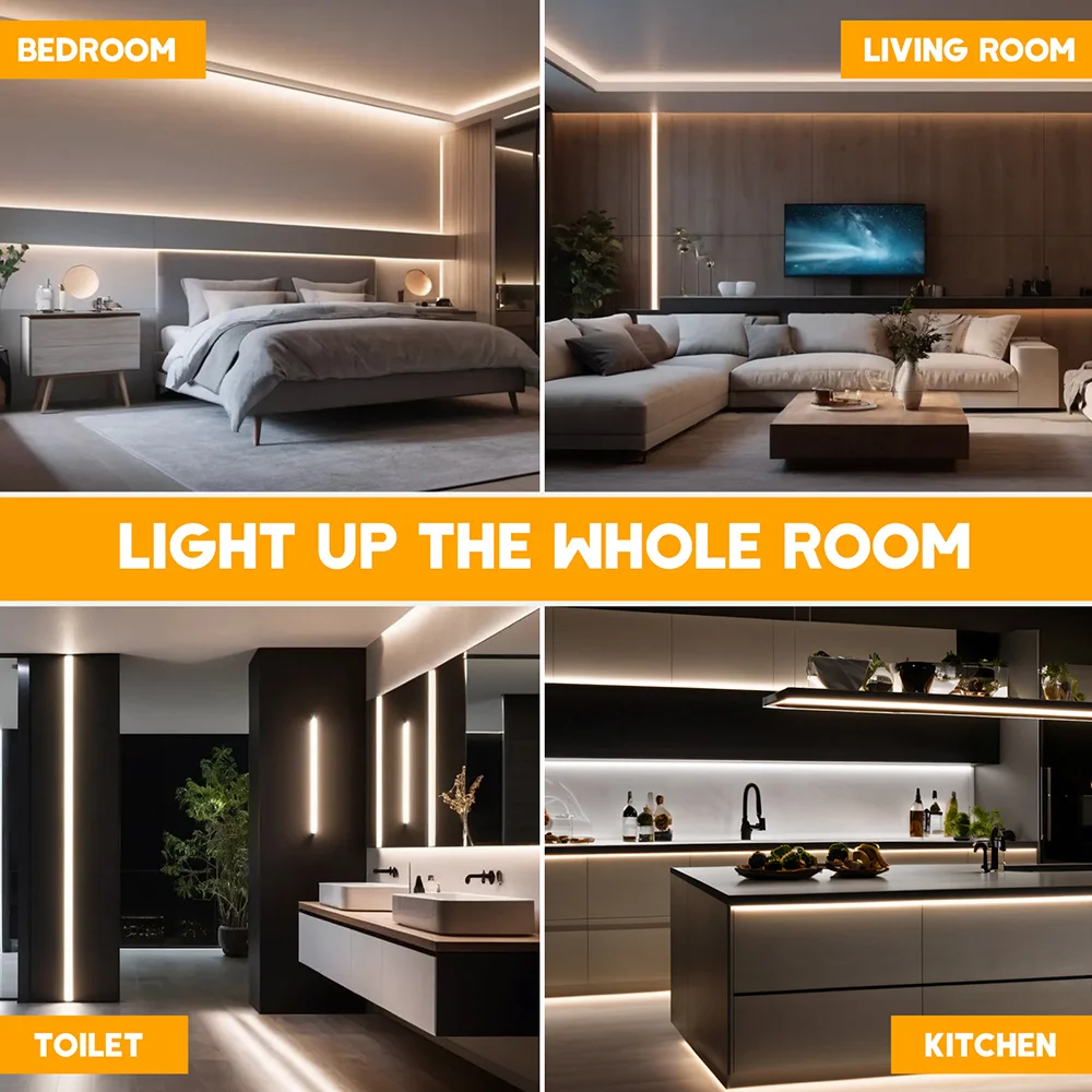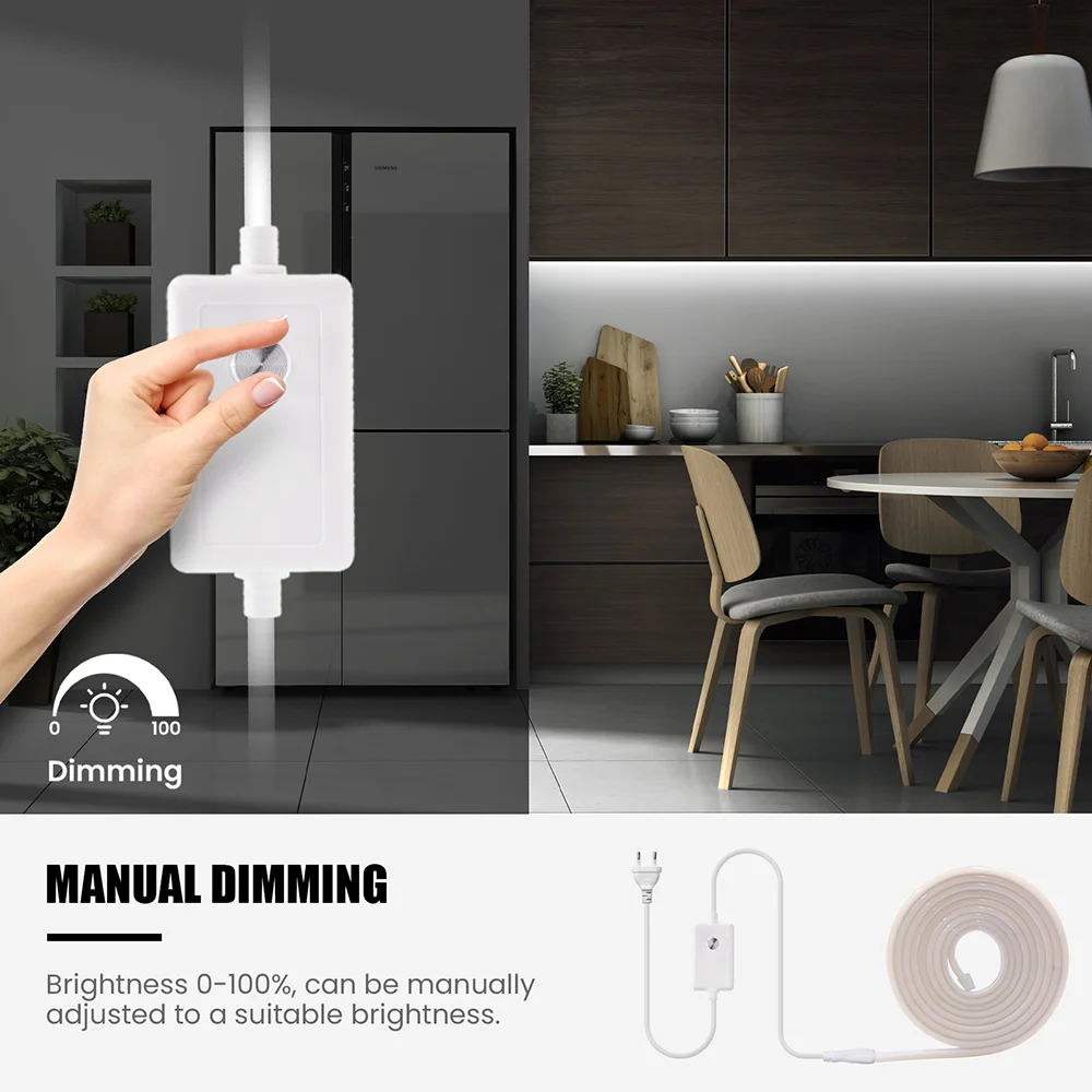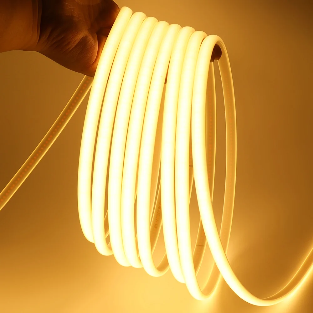 Upgraded COB Neon LED Strip: Encapsulated in flexible transparent silicone tubing, providing consistent and even lighting. Supports dimming control for energy-saving and convenience.