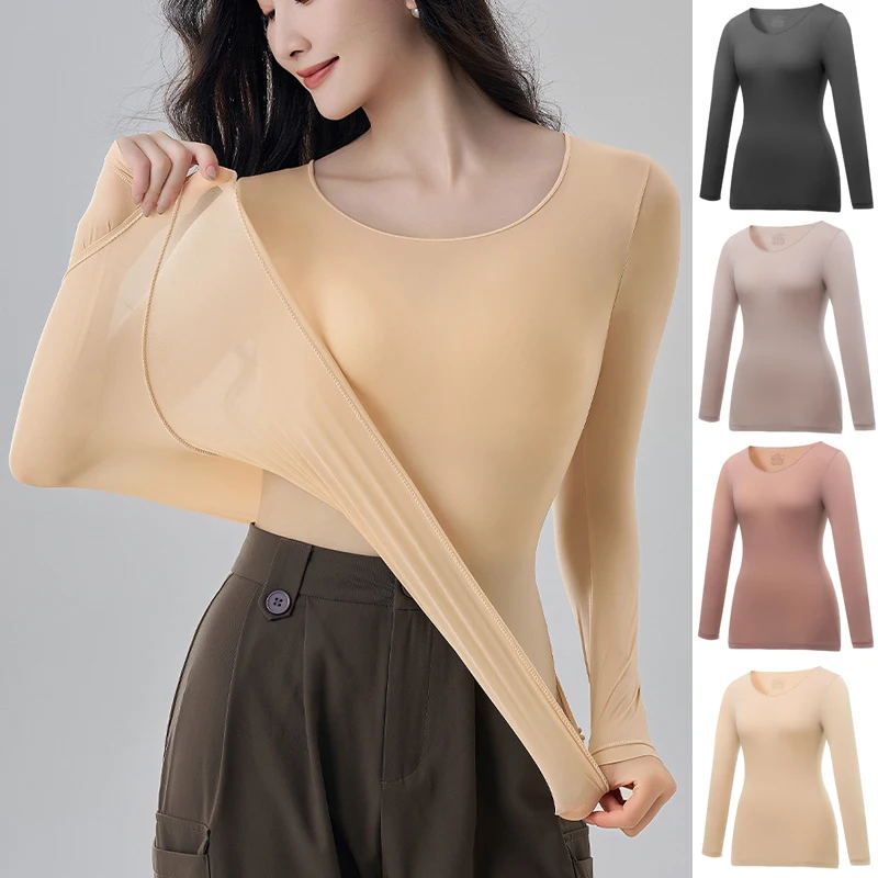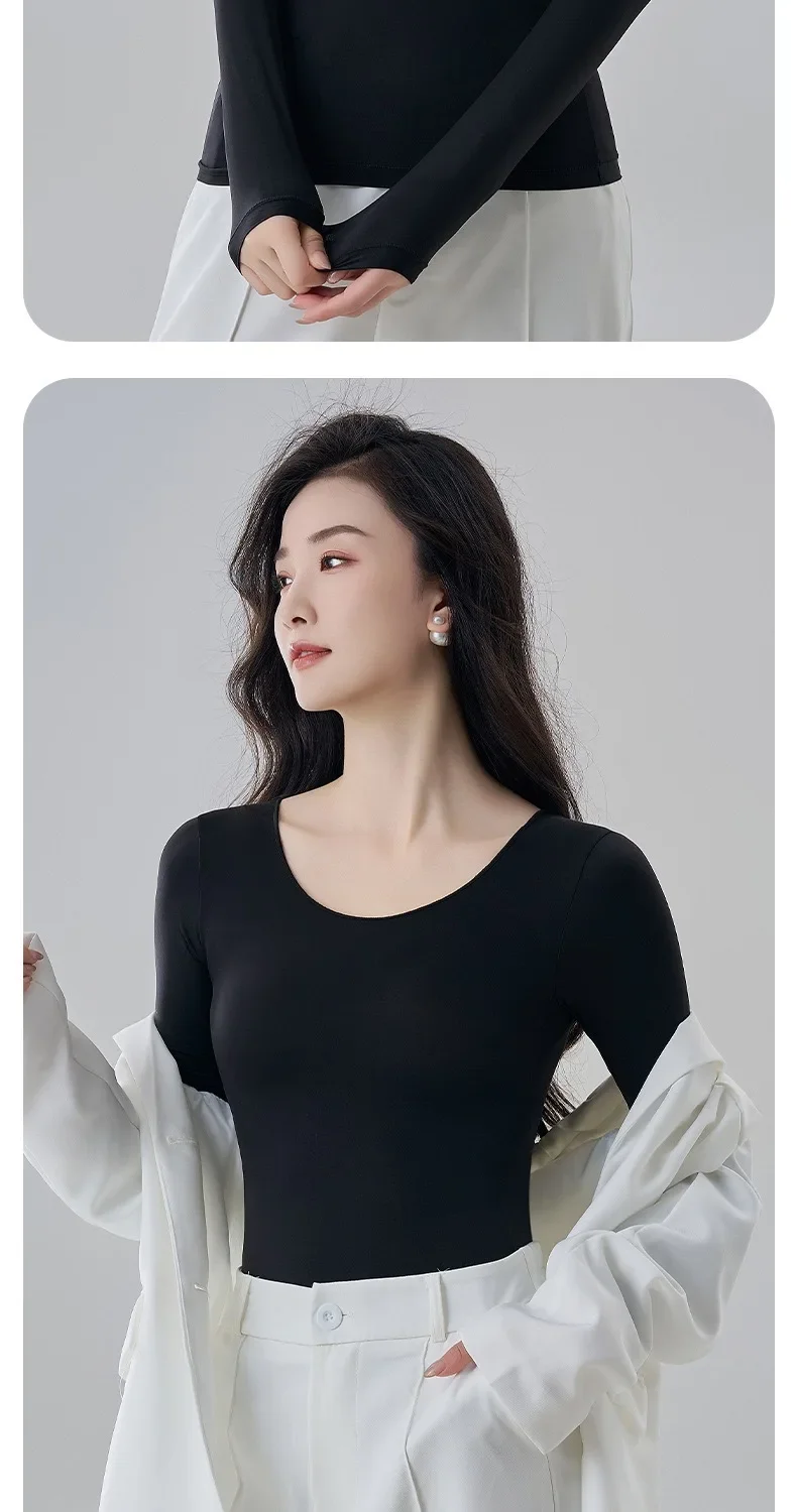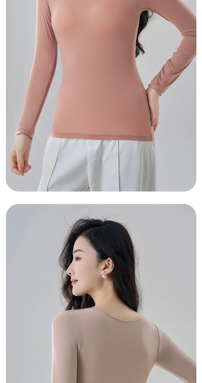 2pcs Women Thermal Underwear Long-sleeved T-shirt Basic Pullover Autumn Winter Ladies Elastic Tights Bottoming Shirt Warmer Top