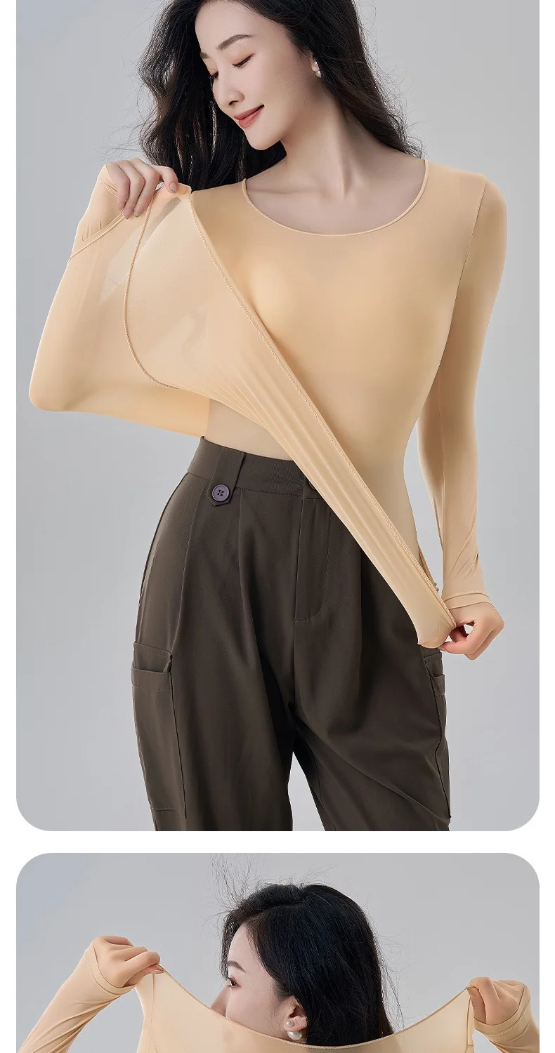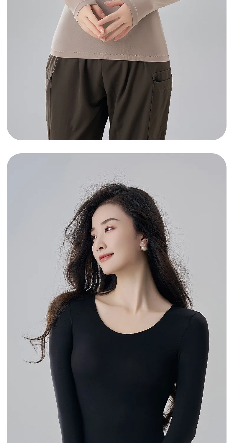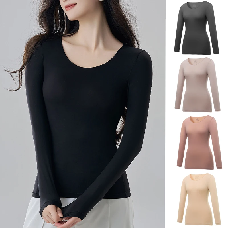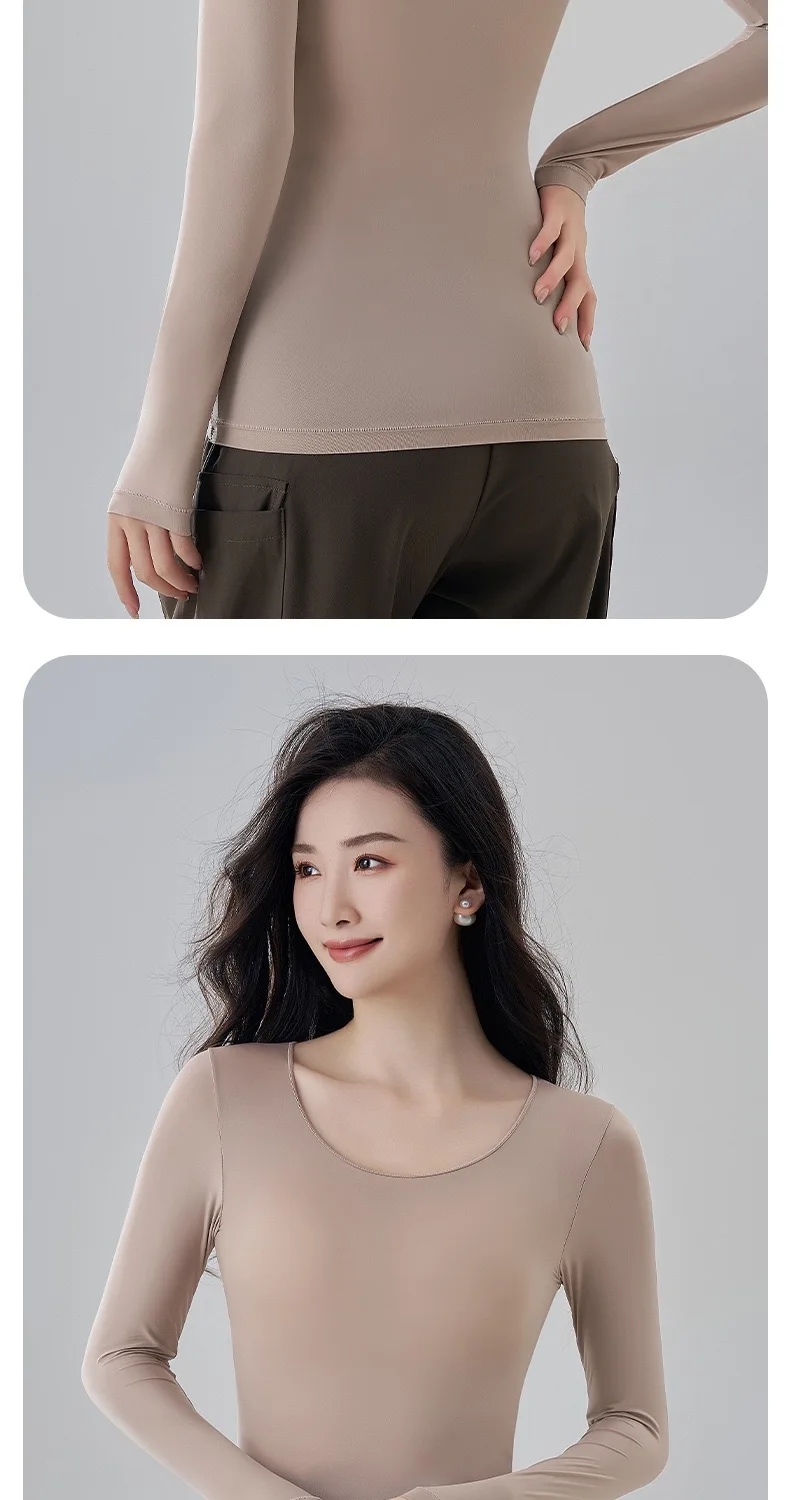 2pcs Women Thermal Underwear Long-sleeved T-shirt Basic Pullover Autumn Winter Ladies Elastic Tights Bottoming Shirt Warmer Top