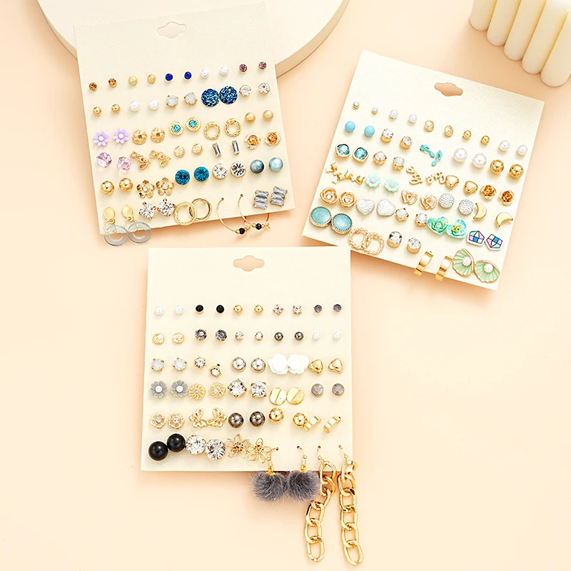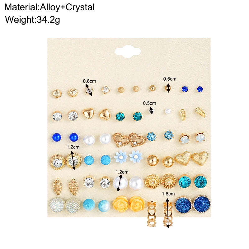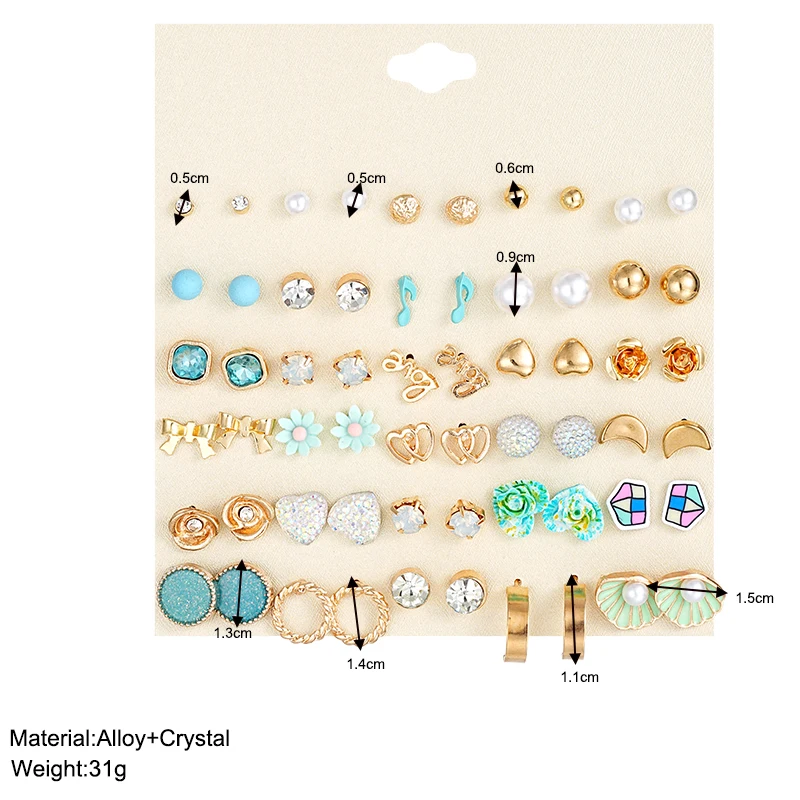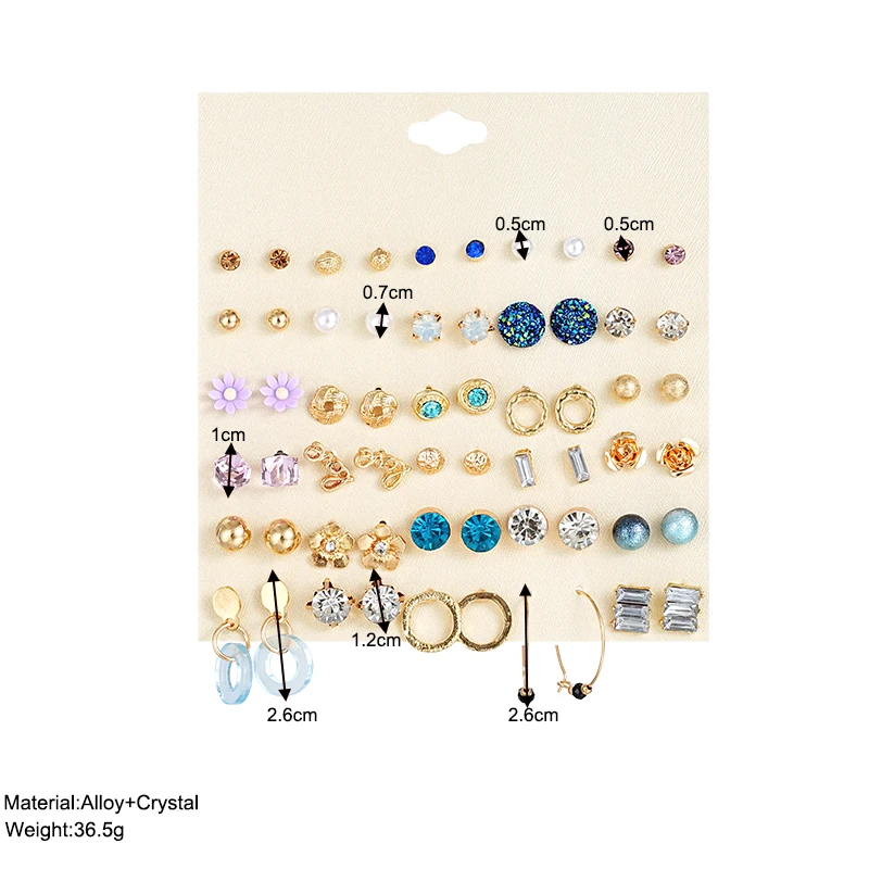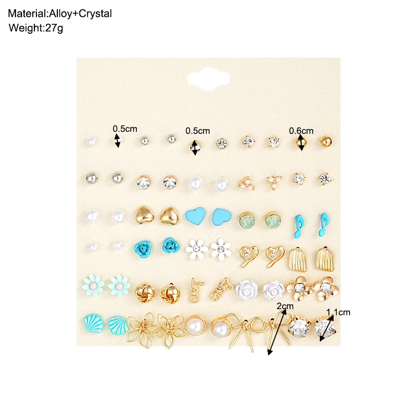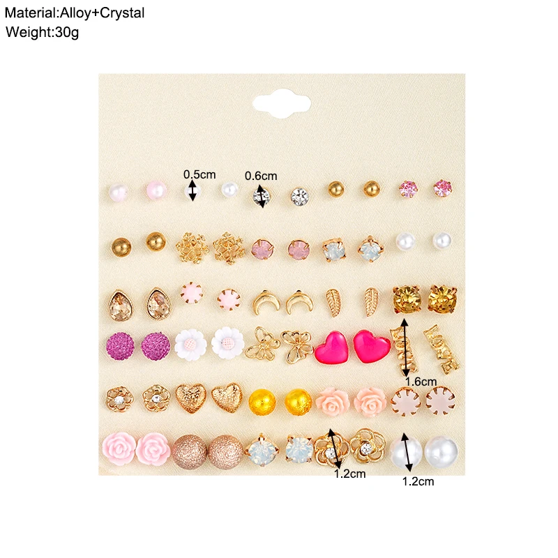 30 Pairs Flowers Small Stud Earrings Sets For Women Girl Geometric Purple Heart Bow knot Ear Jewelry Fashion 2024 New Daily Wear