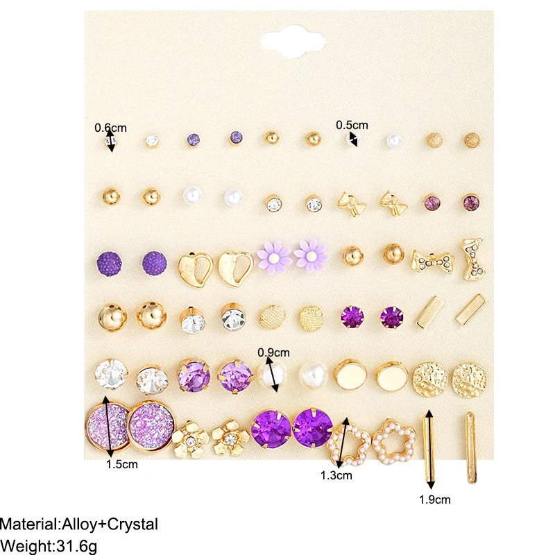 Be the first to review “30 Pairs Flowers Small Stud Earrings Sets For Women Girl Geometric Purple Heart Bow knot Ear Jewelry Fashion 2024 New Daily Wear”