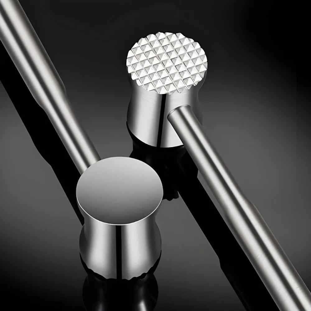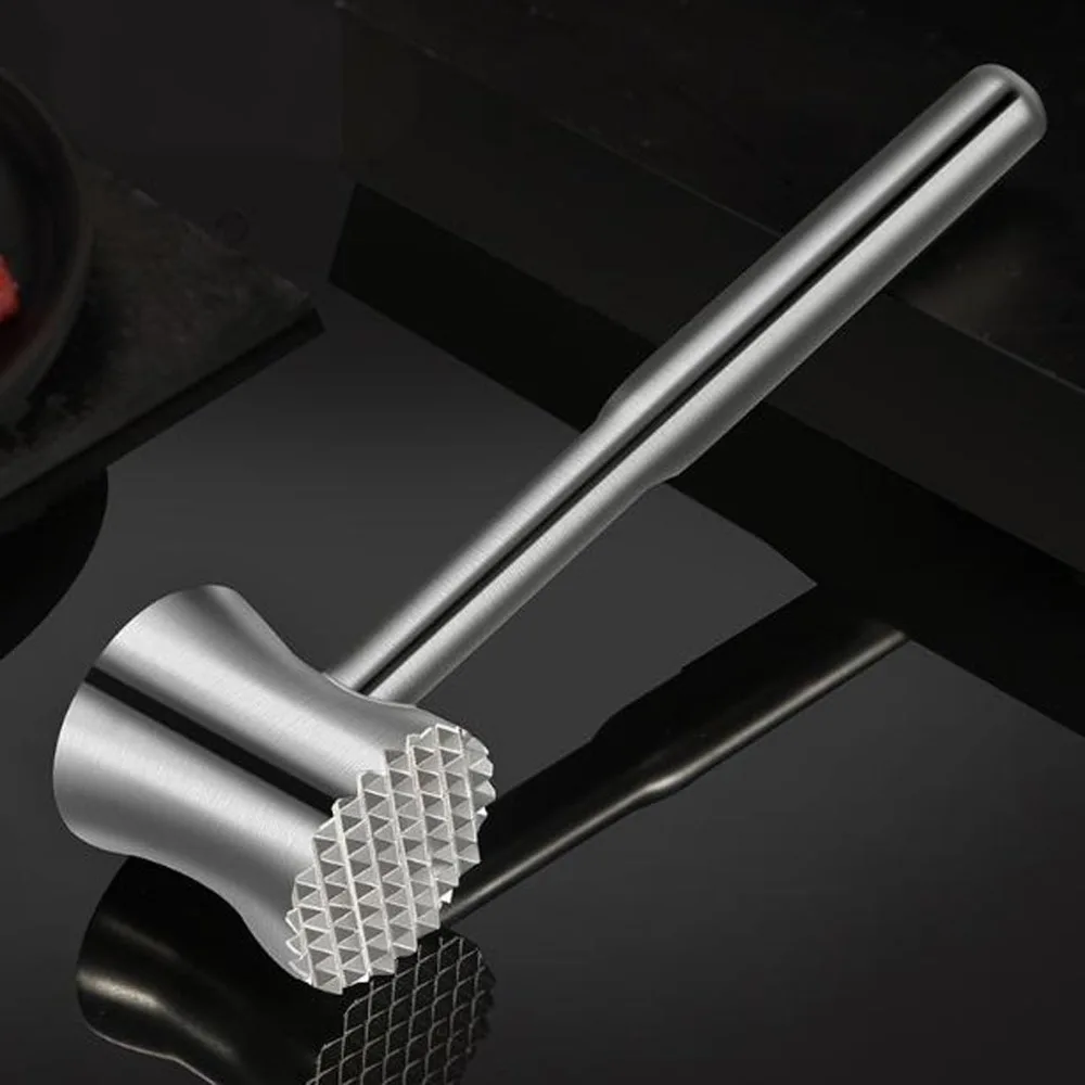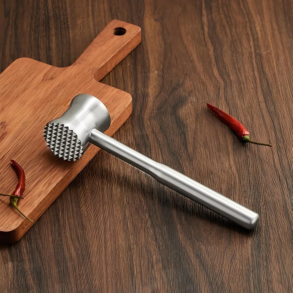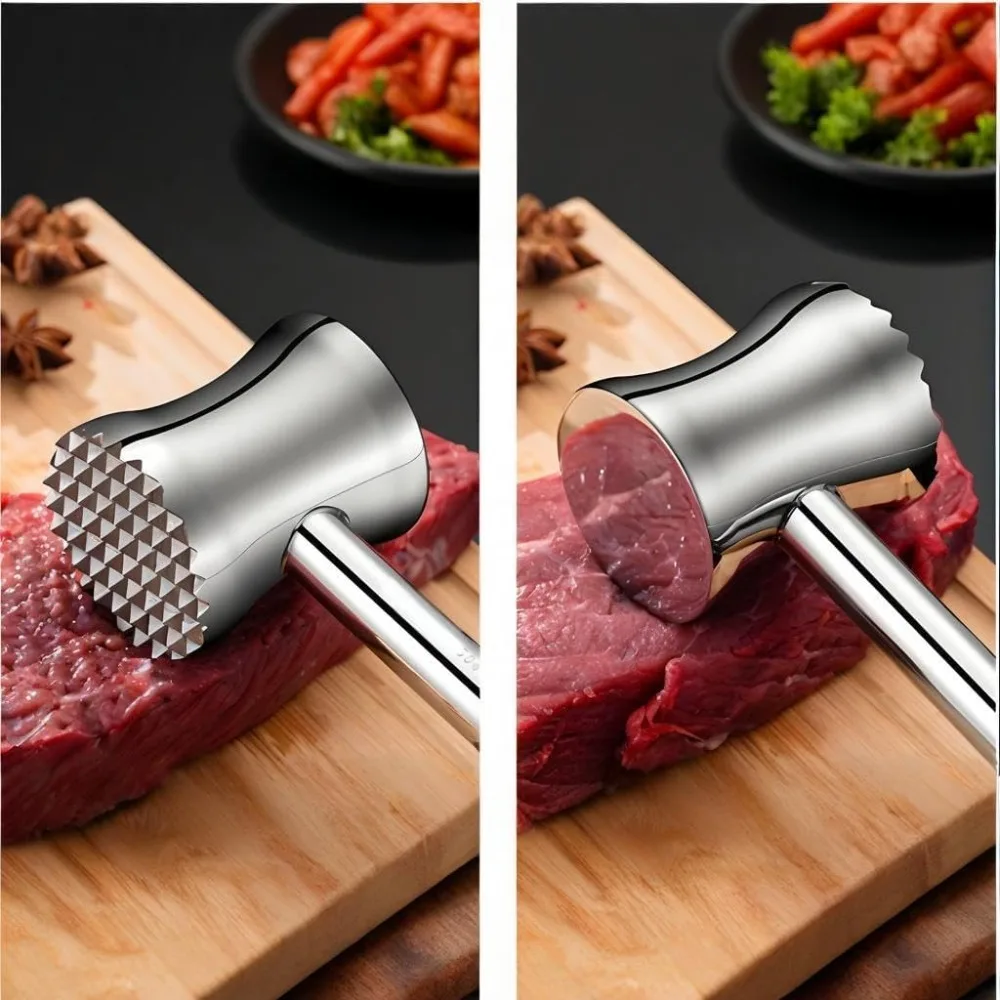 4. Versatile Kitchen Tool: This meat tenderizer is not only suitable for tenderizing steaks and pork chops, but can also be used to crush ice, pound garlic, pound cucumbers, and crack nuts. Its sleek stainless steel design is easy to clean and dishwasher-safe, making it a practical addition to any kitchen.