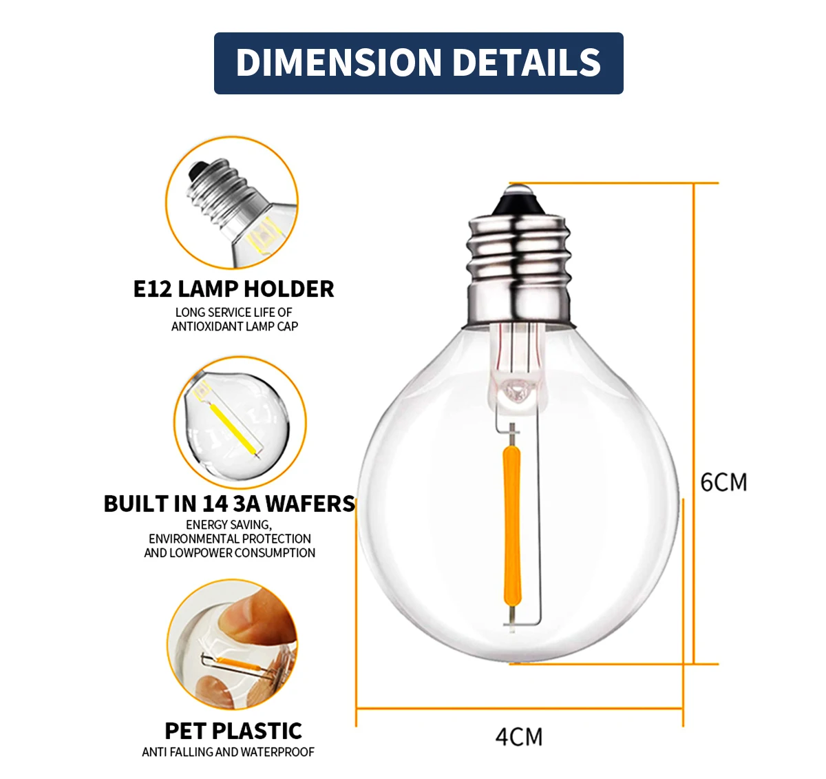 The size of the bulb: 4×6 cm