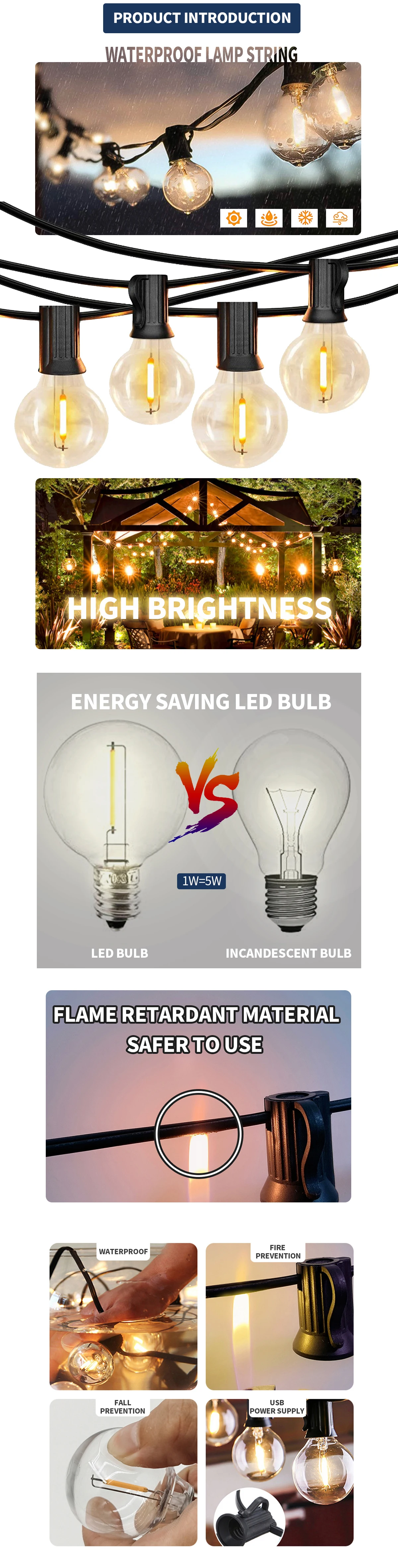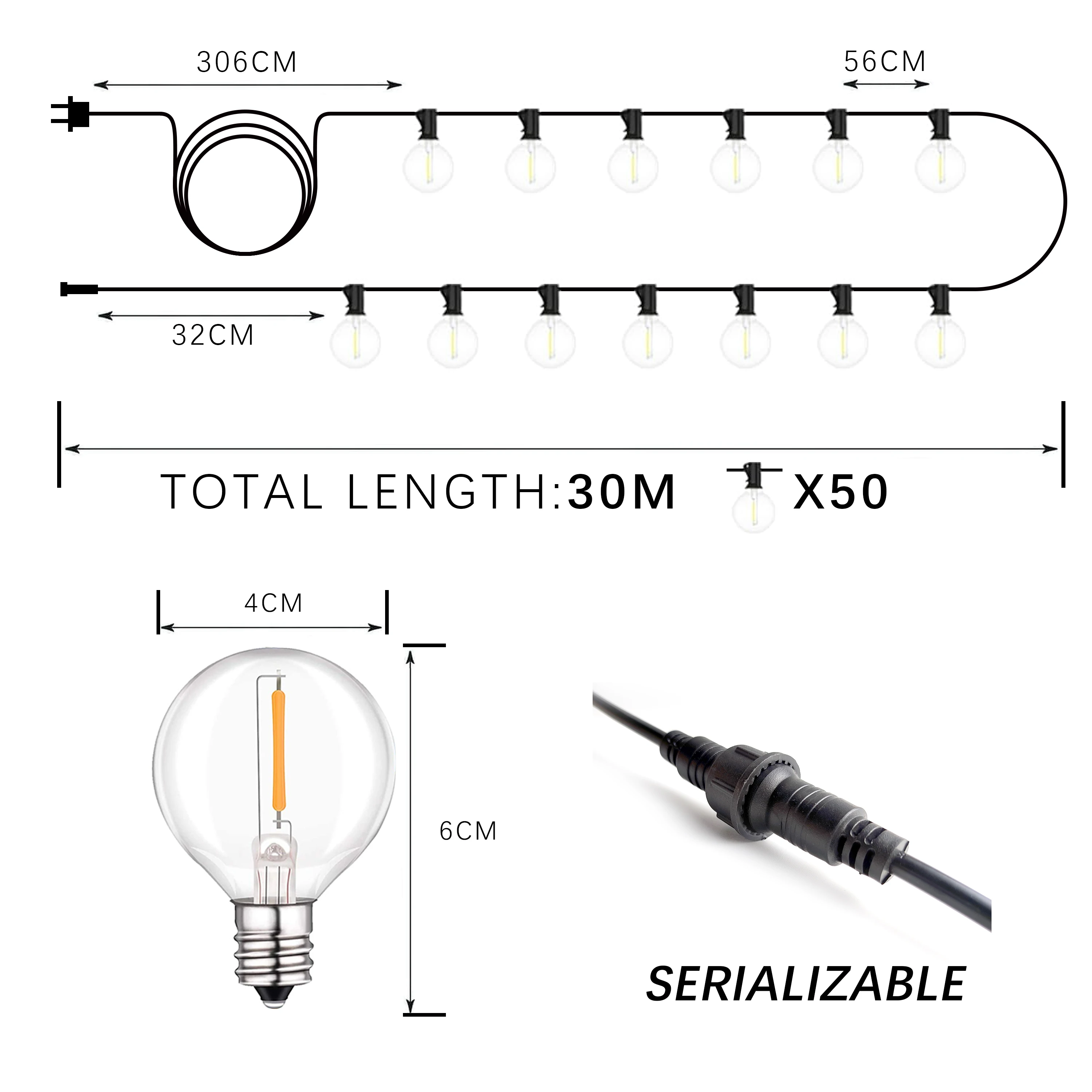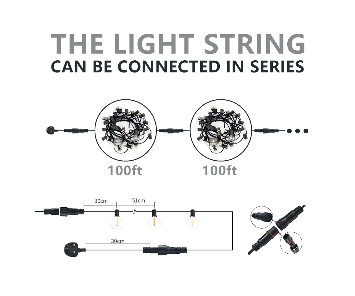 Connectable:Can be connected up to 30 sets G40 String Light